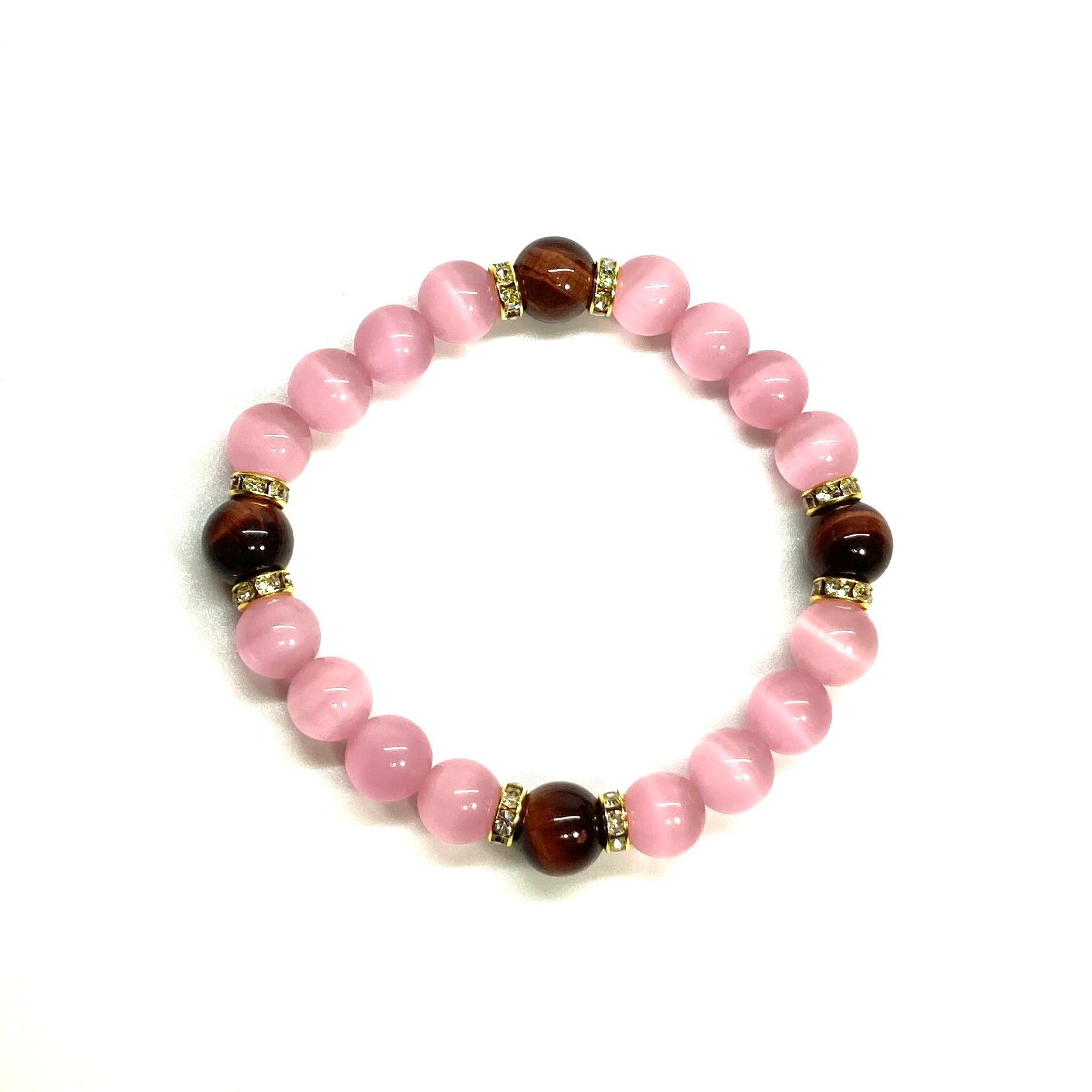 キャッツアイ(ピンク)×レッドタイガーアイ パワーストーン ブレスレット (ゴールド) メンズ・レディース 男性・女性 数珠ブレス 開運