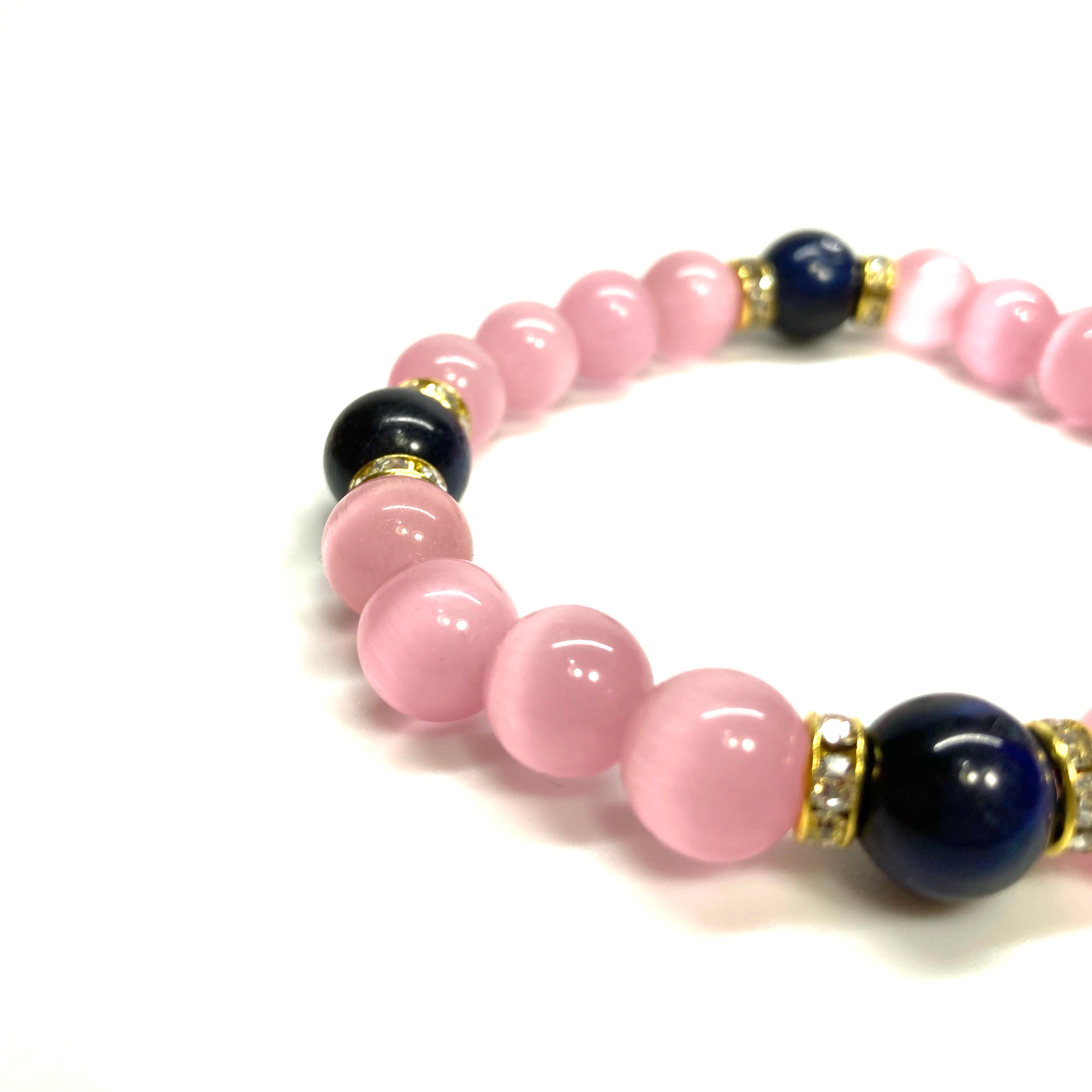 キャッツアイ(ピンク)×ブルータイガーアイ パワーストーン ブレスレット (ゴールド) メンズ・レディース 男性・女性 数珠ブレス 開運
