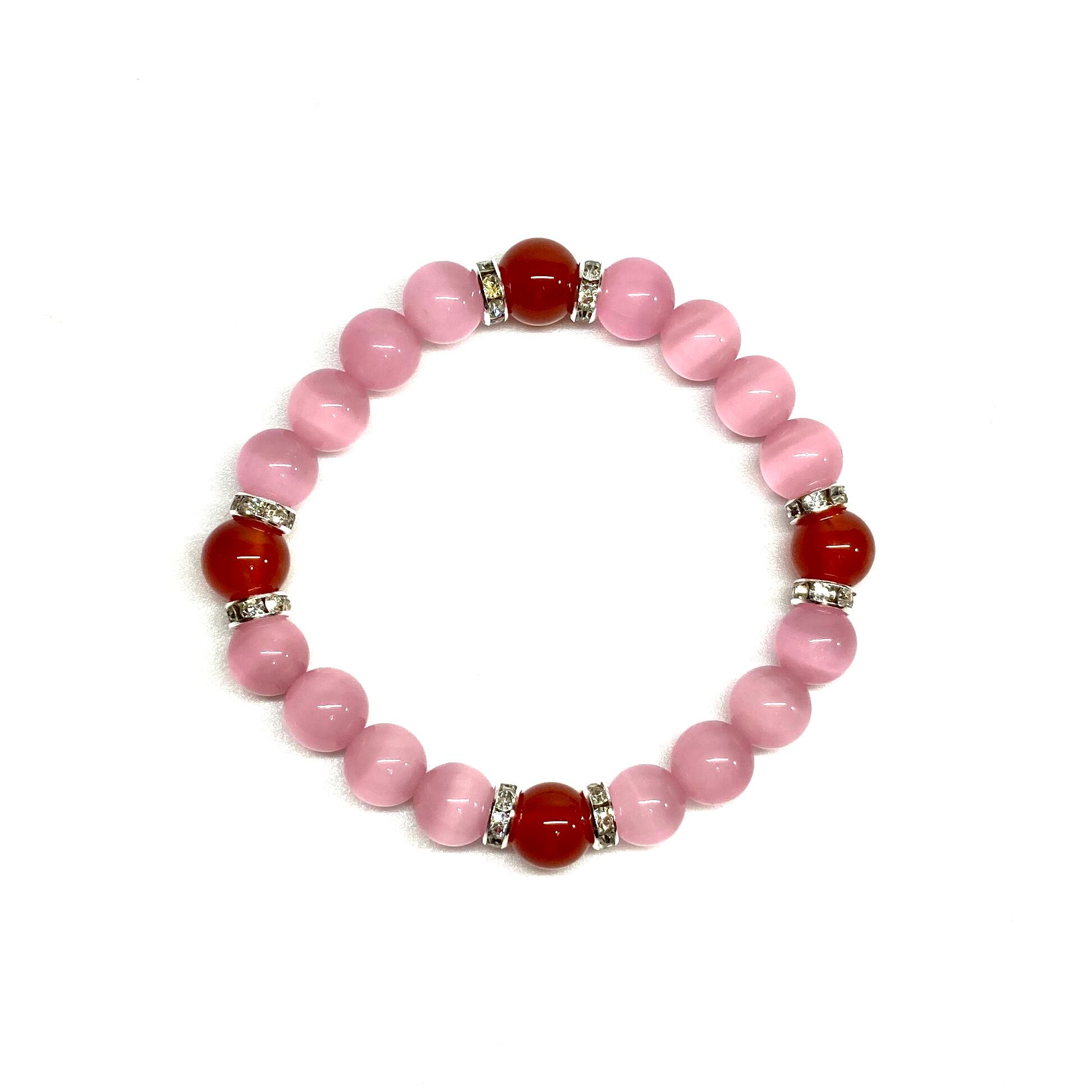 キャッツアイ(ピンク)×赤瑪瑙 パワーストーン ブレスレット (シルバー) メンズ・レディース 男性・女性 数珠ブレス 開運