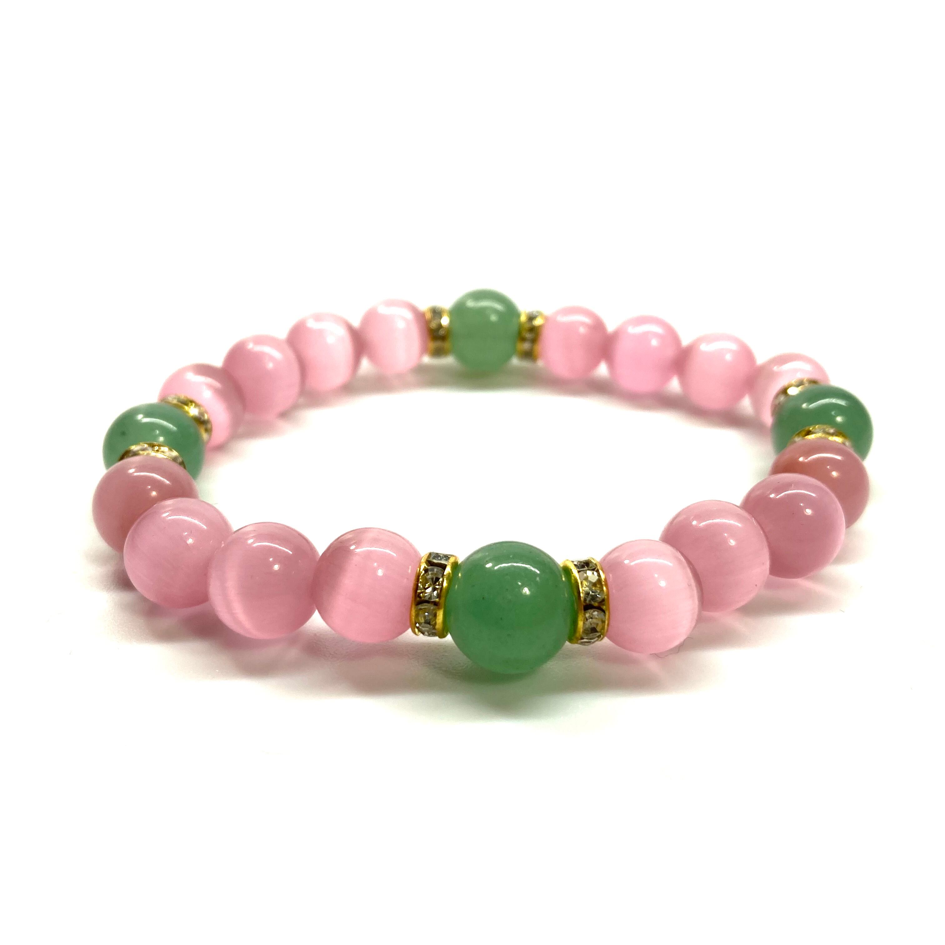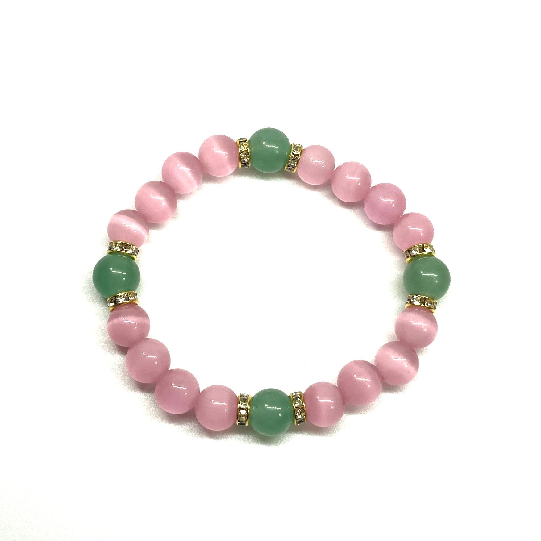 キャッツアイ(ピンク)×アベンチュリン パワーストーン ブレスレット (ゴールド) メンズ・レディース 男性・女性 数珠ブレス 開運