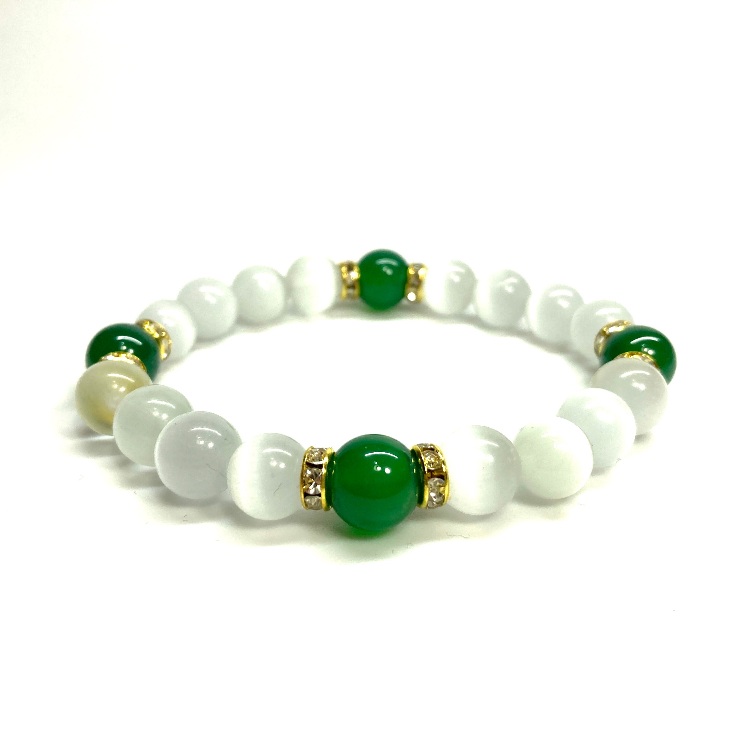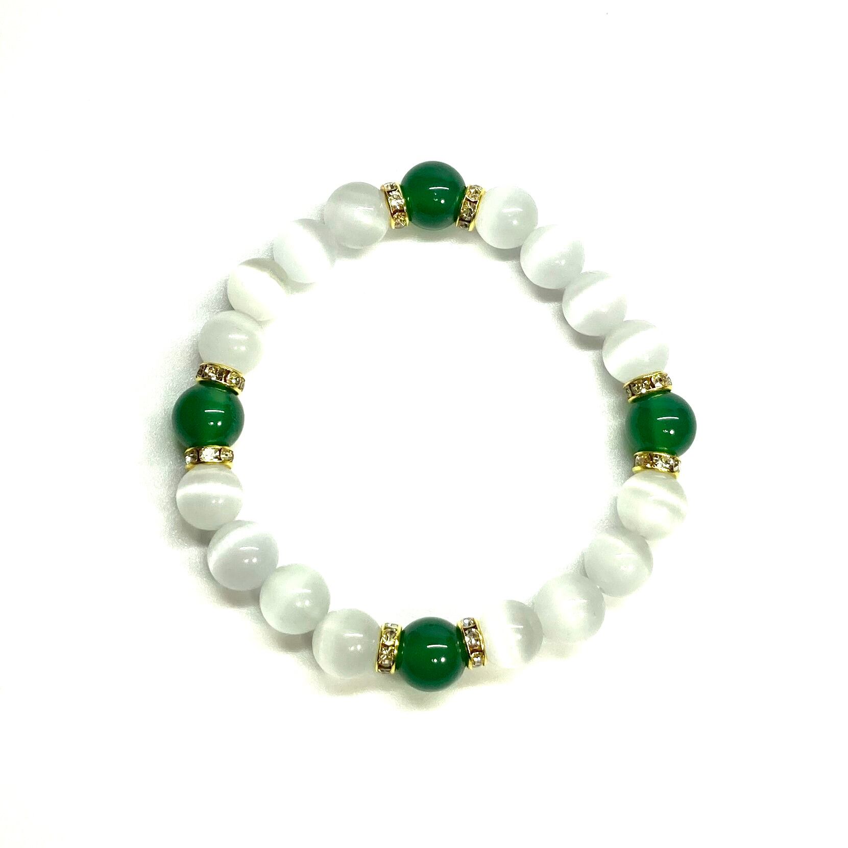 キャッツアイ(ホワイト)×緑瑪瑙 パワーストーン ブレスレット (ゴールド) メンズ・レディース 男性・女性 数珠ブレス 開運