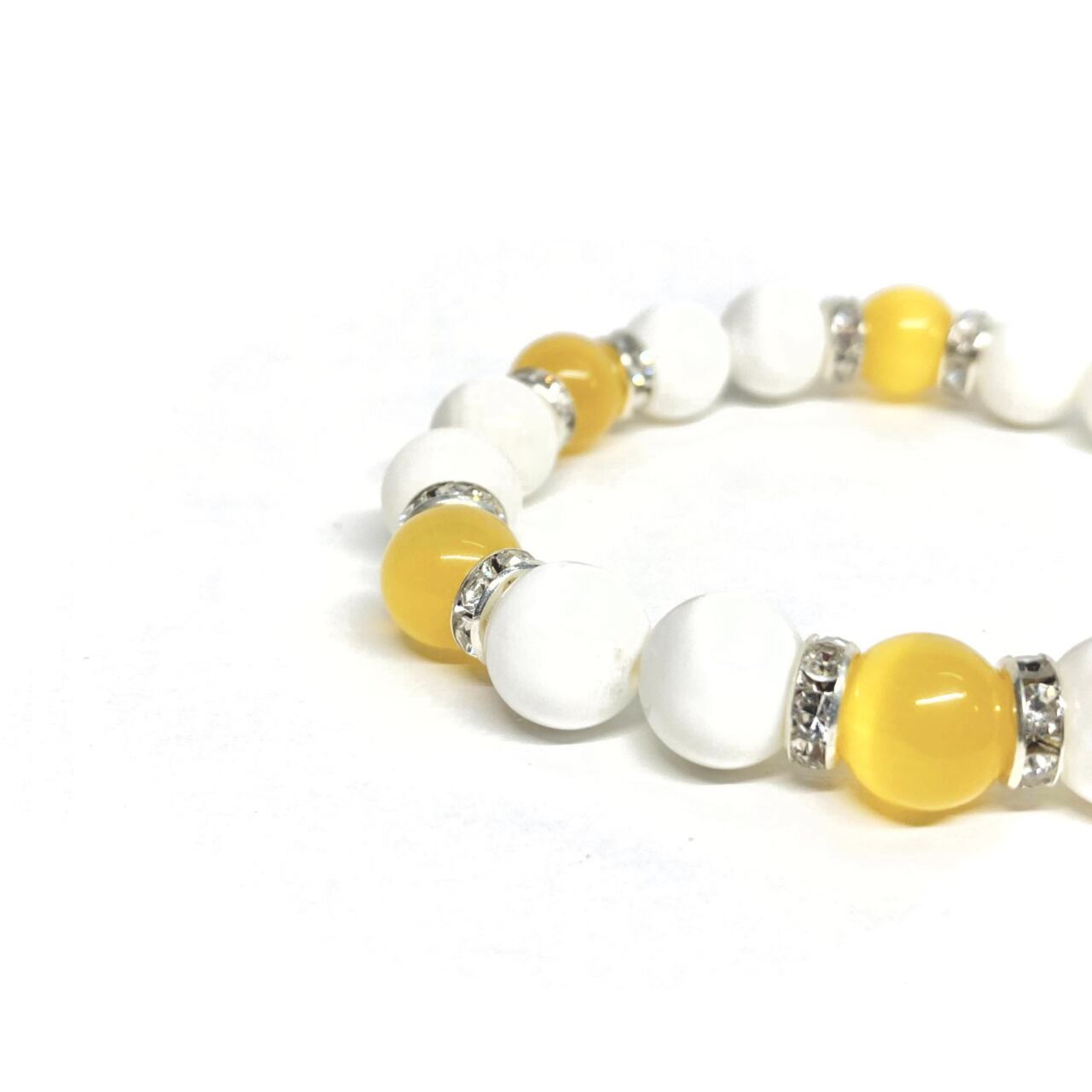 キャッツアイ(イエロー) ホワイトオニキス パワーストーン ブレスレット (シルバー) メンズ・レディース 男性・女性 数珠ブレス 開運