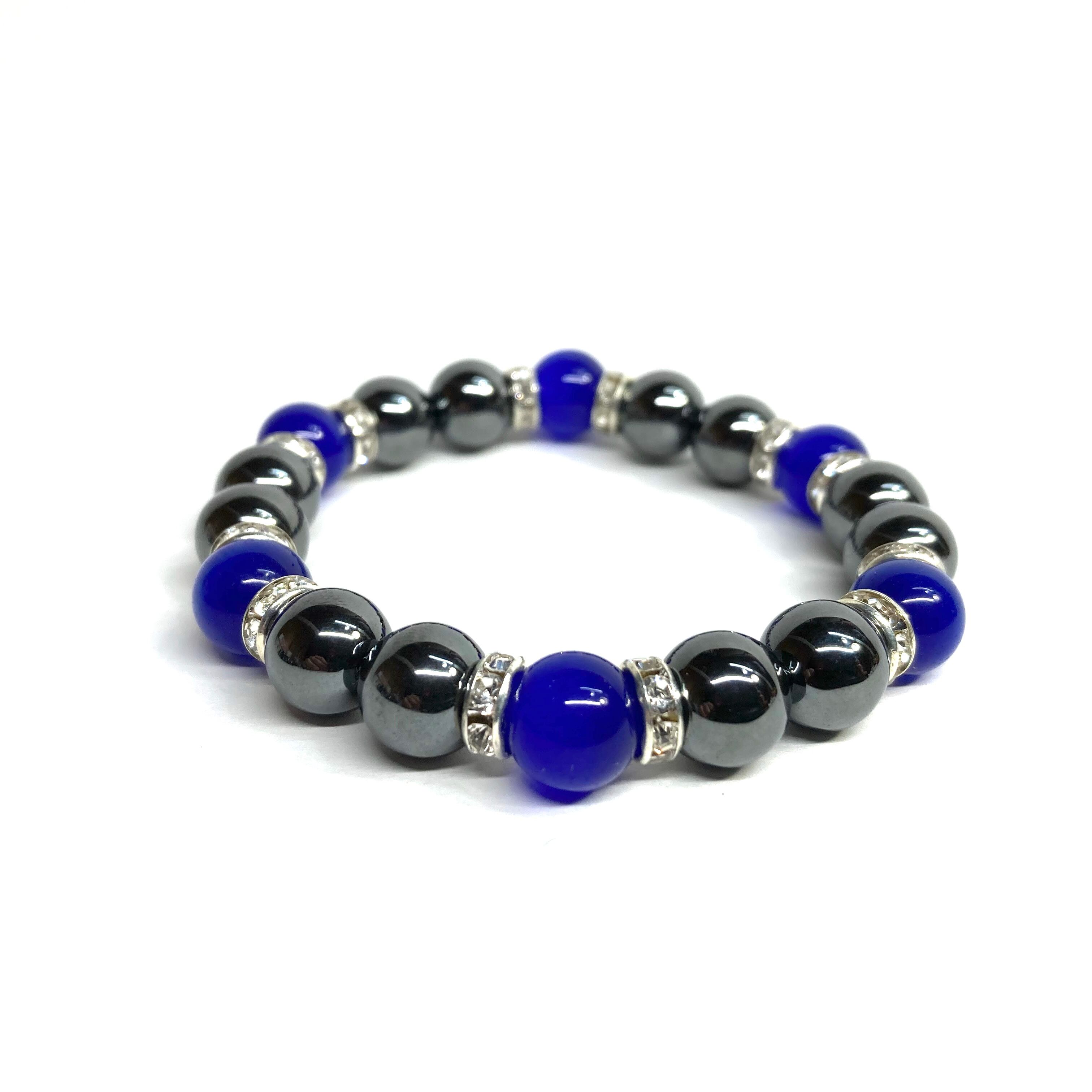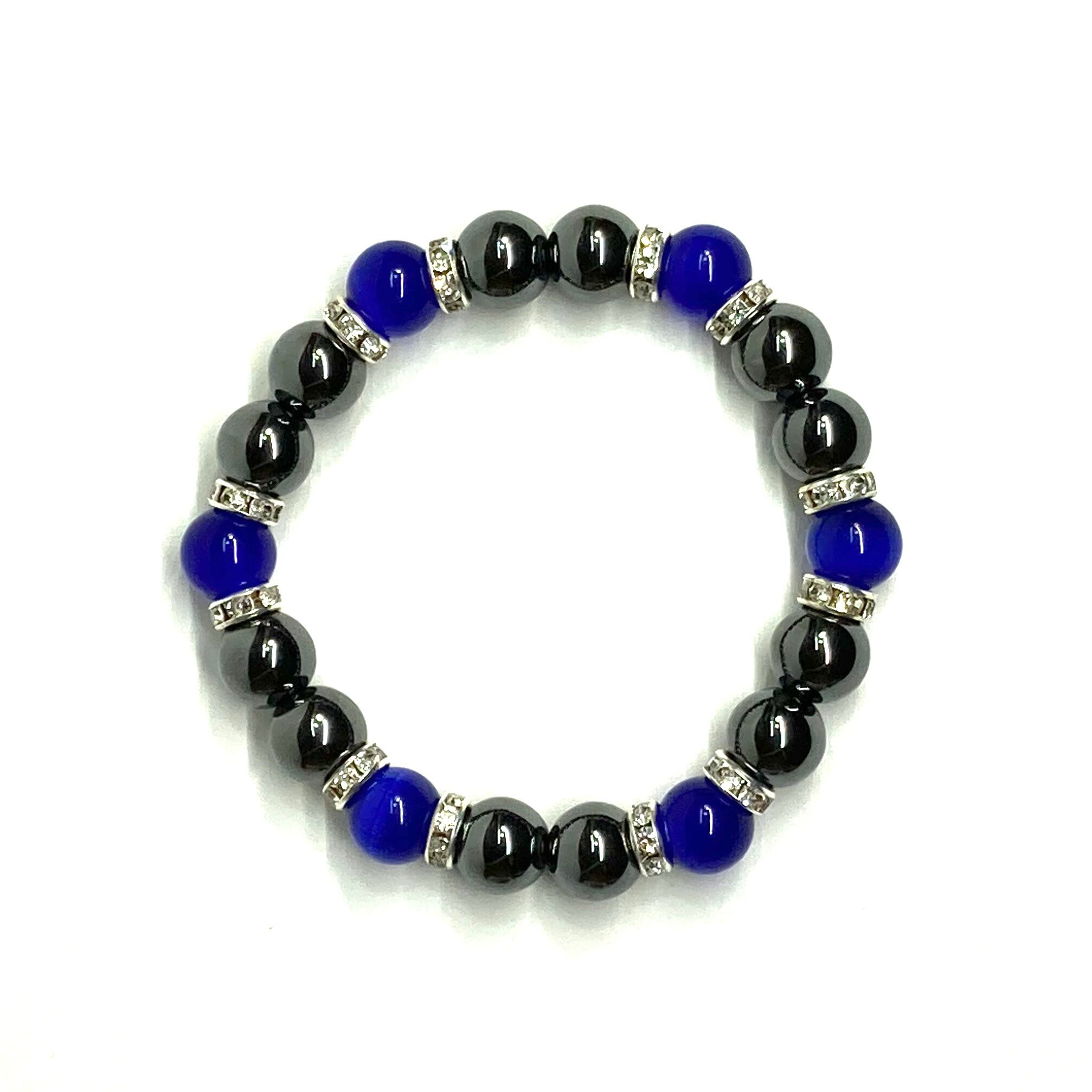 キャッツアイ(ダークブルー) ヘマタイト パワーストーン ブレスレット (シルバー) メンズ・レディース 男性・女性 数珠ブレス 開運