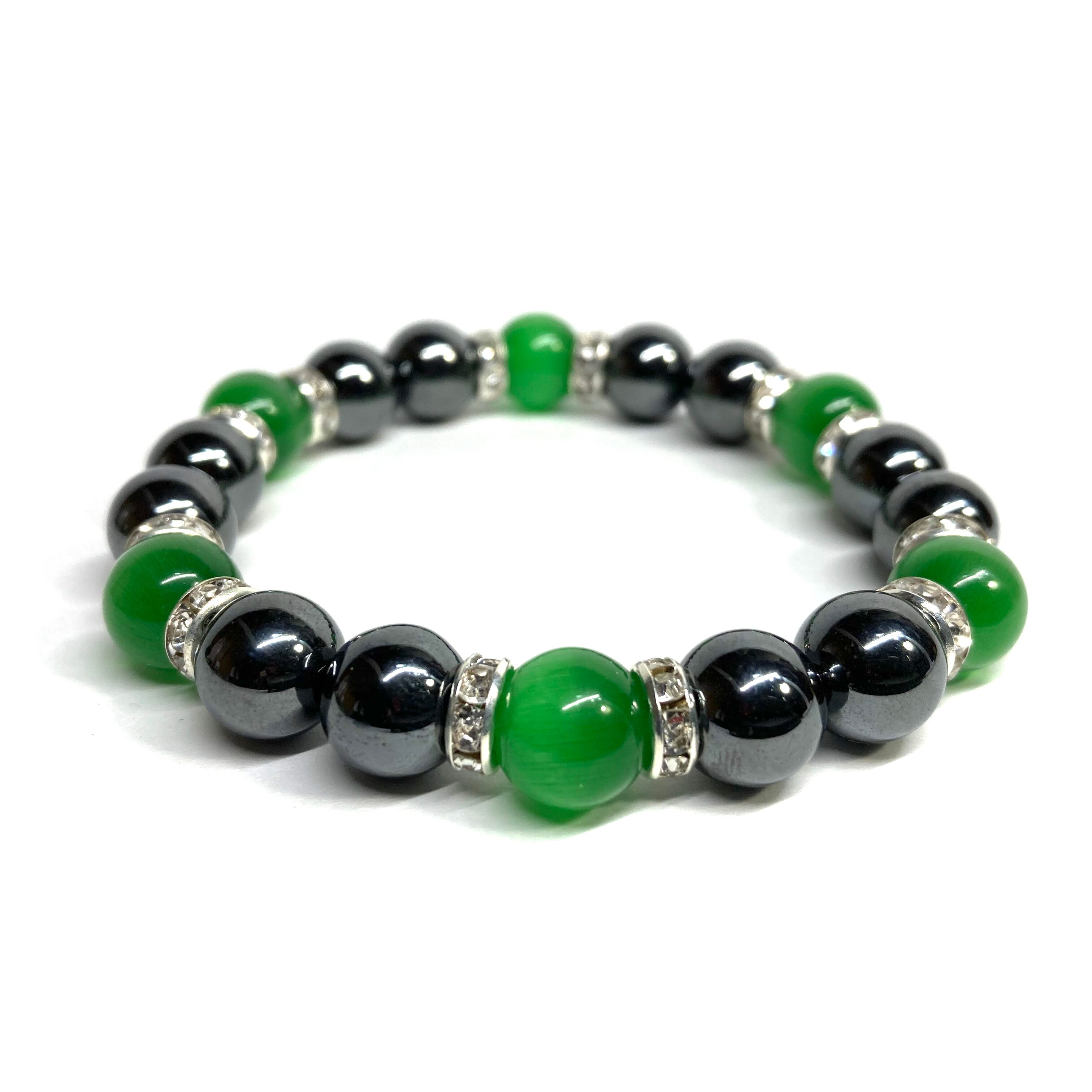 キャッツアイ(グリーン) ヘマタイト パワーストーン ブレスレット (シルバー) メンズ・レディース 男性・女性 数珠ブレス 開運