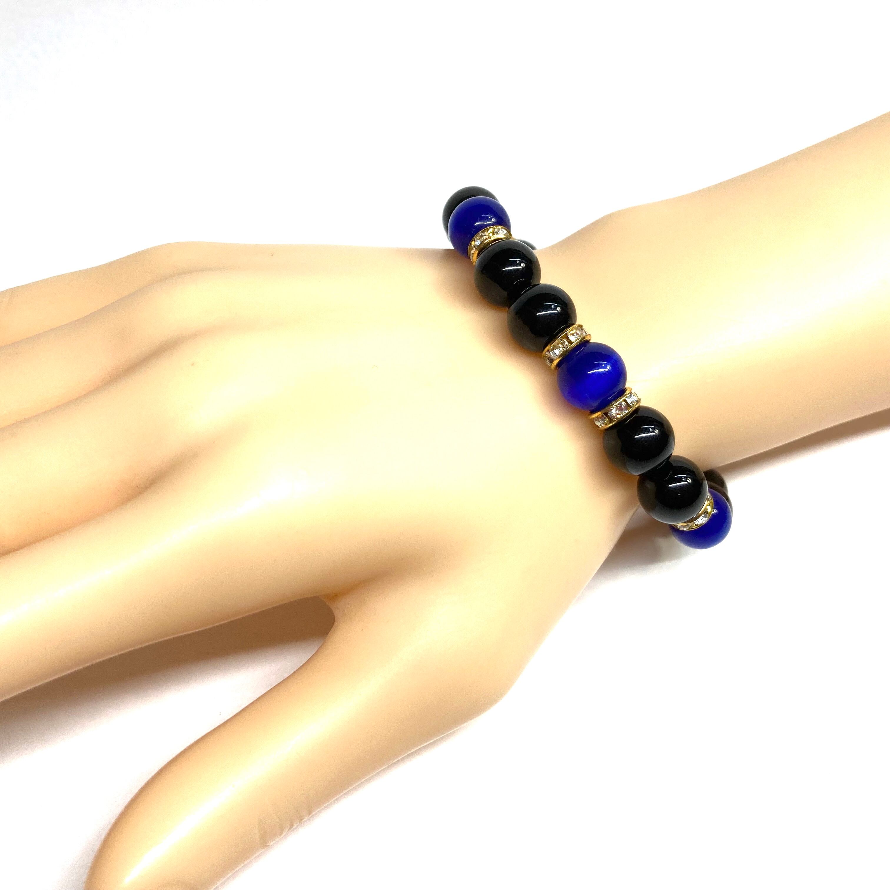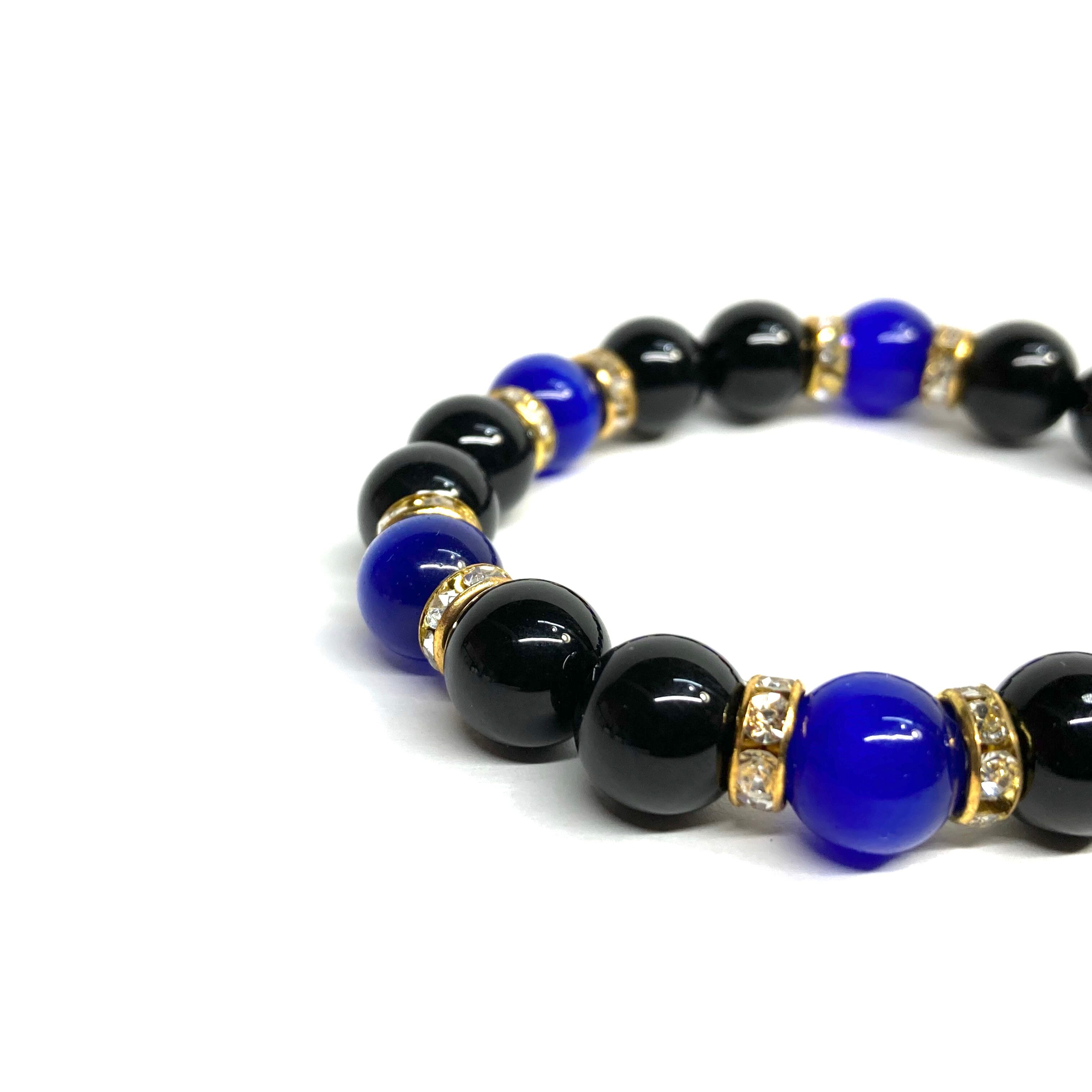 キャッツアイ(ダークブルー) オニキス パワーストーン ブレスレット (ゴールド) メンズ・レディース 男性・女性 数珠ブレス 開運