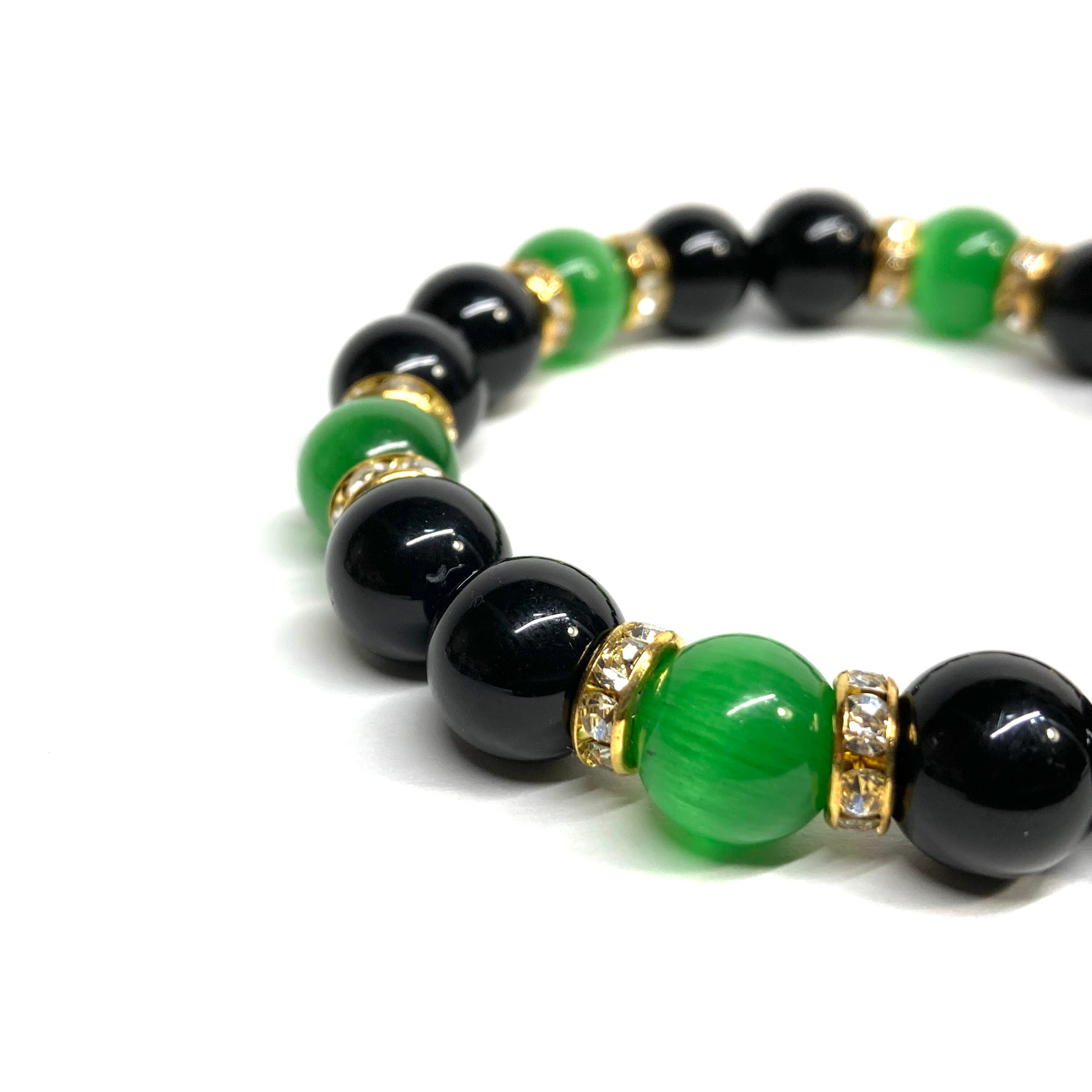 キャッツアイ(グリーン) オニキス パワーストーン ブレスレット (ゴールド) メンズ・レディース 男性・女性 数珠ブレス 開運