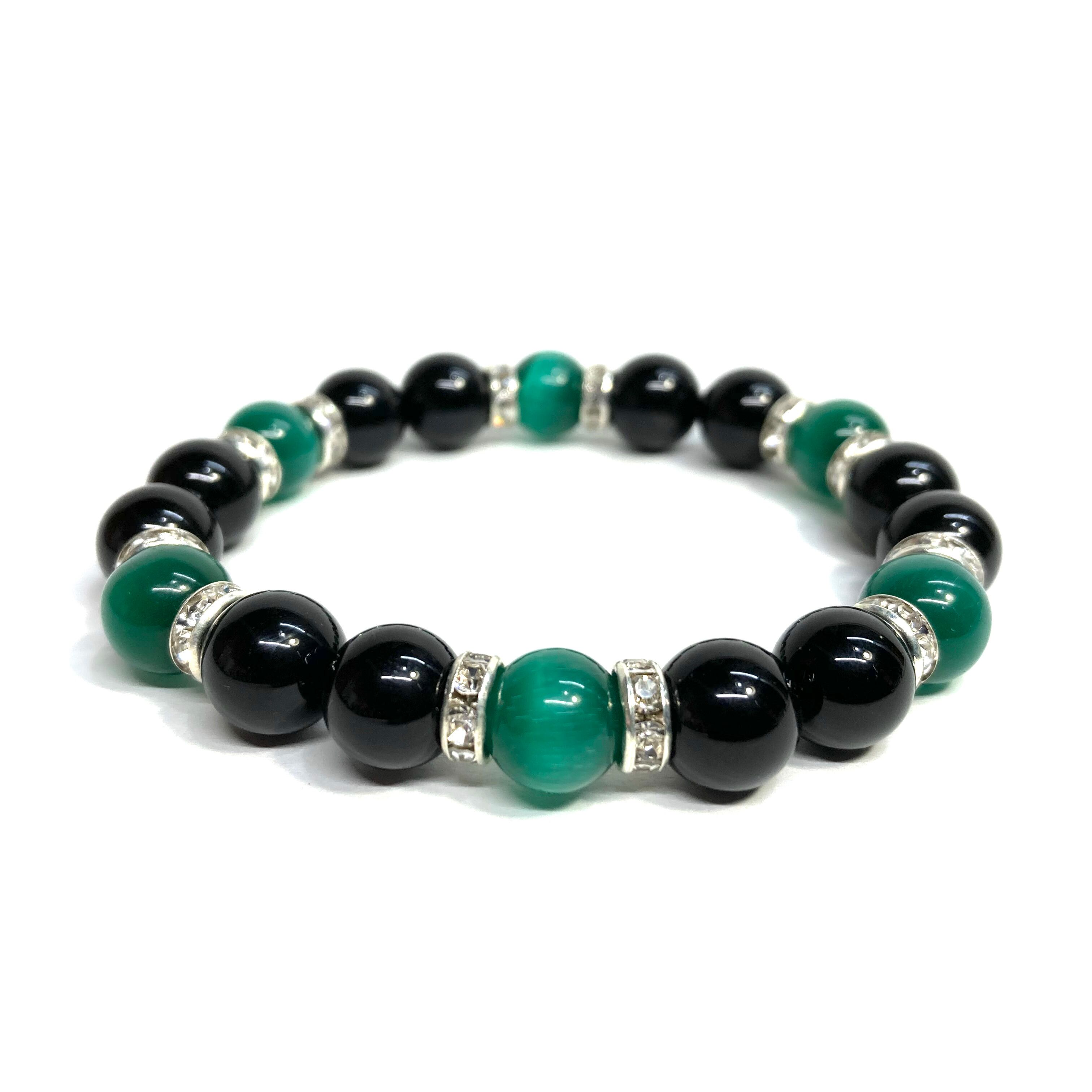 キャッツアイ(ダークグリーン) オニキス パワーストーン ブレスレット (シルバー) メンズ・レディース 男性・女性 数珠ブレス 開運