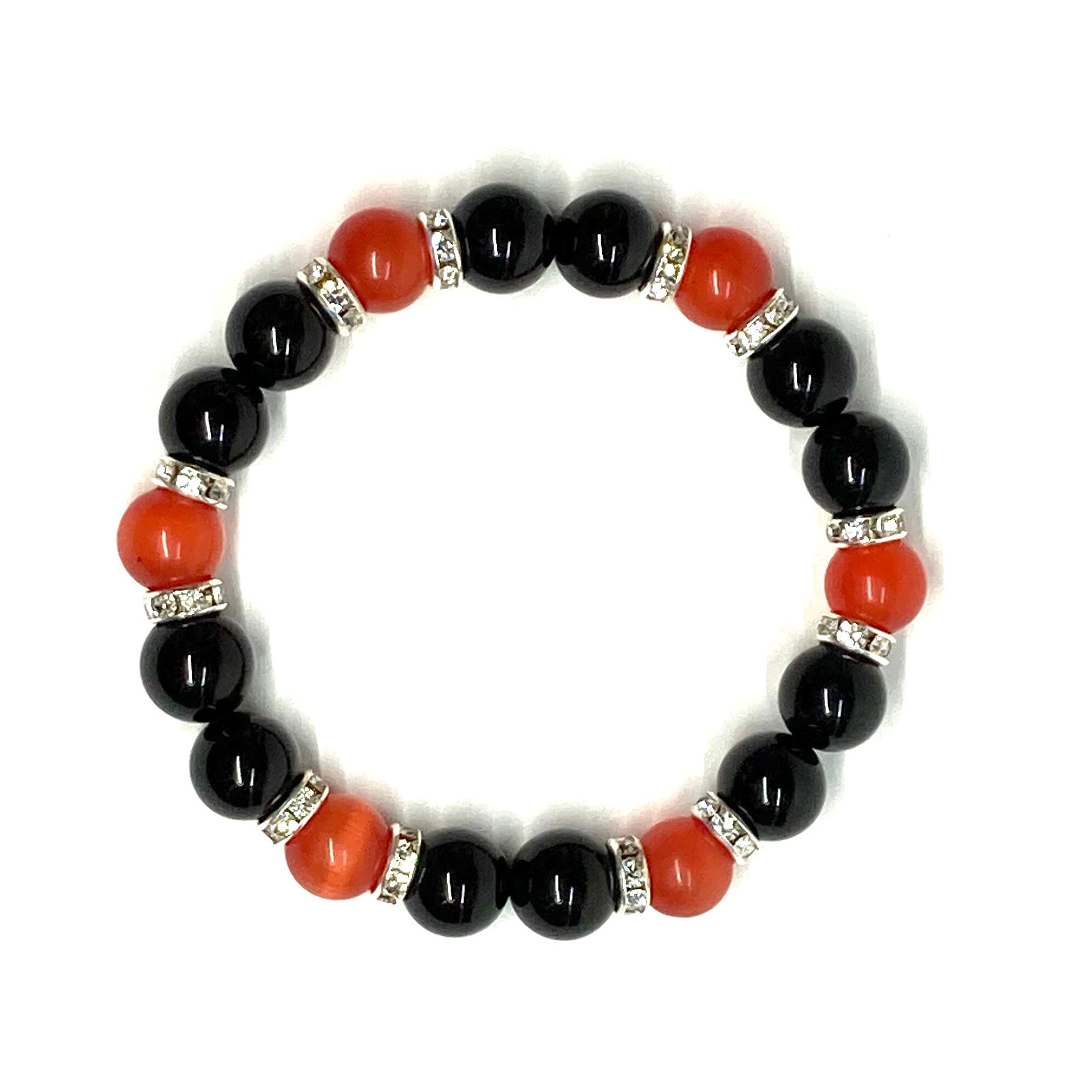 キャッツアイ(レッド) オニキス パワーストーン ブレスレット (シルバー) メンズ・レディース 男性・女性 数珠ブレス 開運