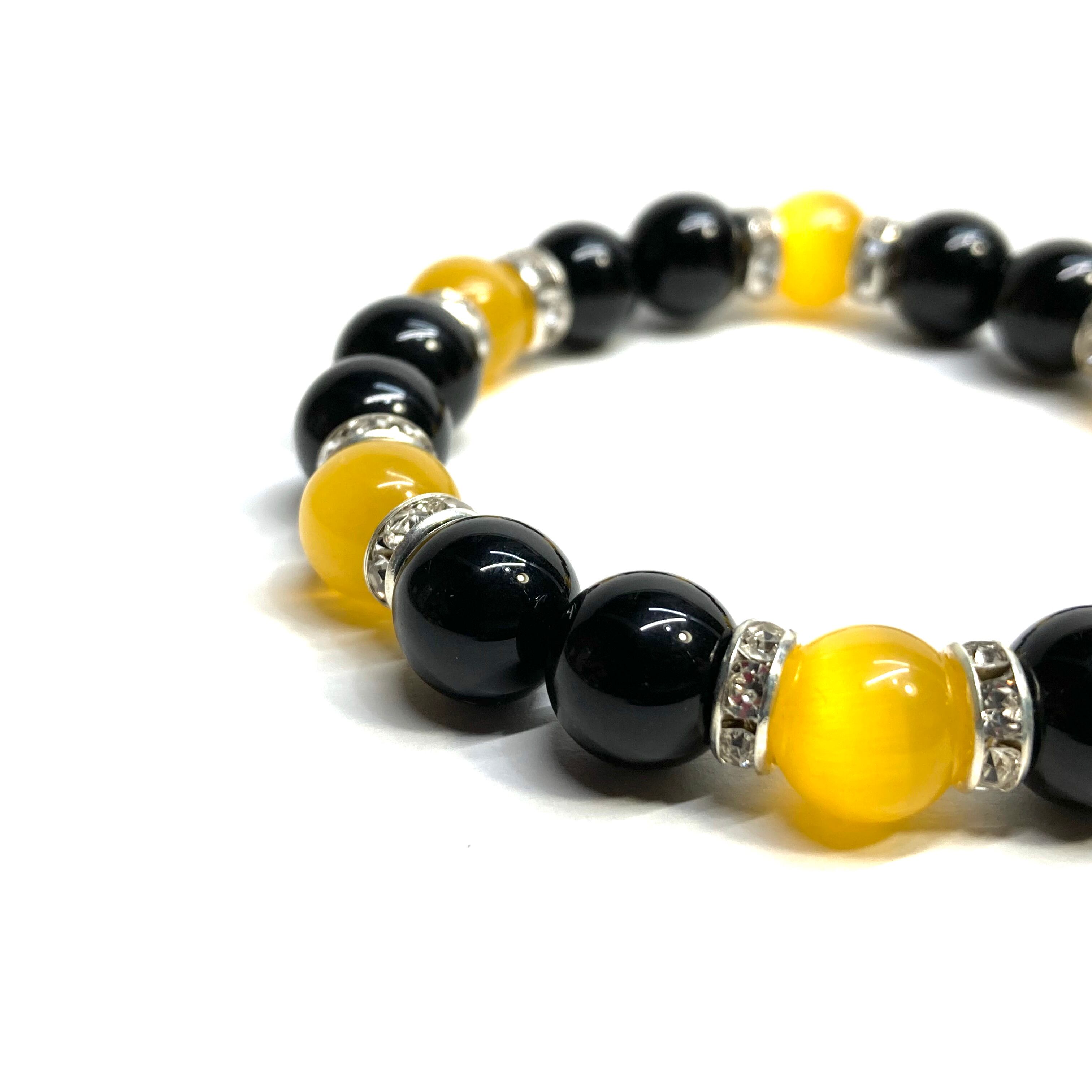 キャッツアイ(イエロー) オニキス パワーストーン ブレスレット (シルバー) メンズ・レディース 男性・女性 数珠ブレス 開運