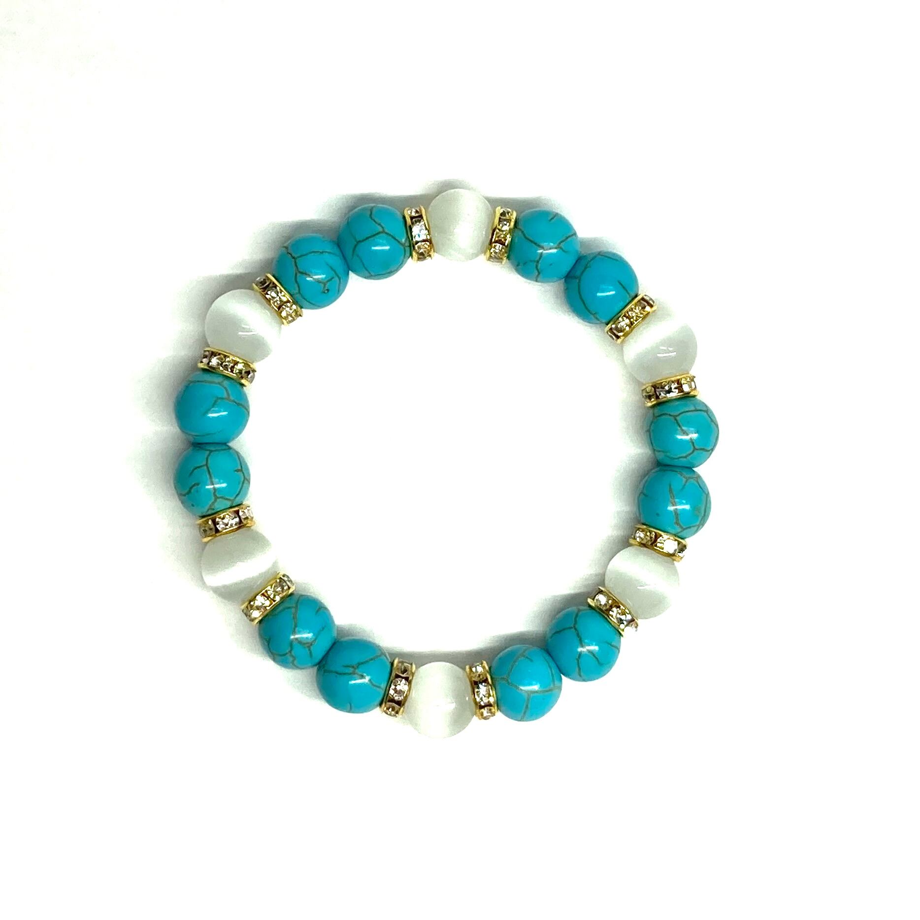 キャッツアイ(ホワイト) ターコイズ パワーストーン ブレスレット (ゴールド) メンズ・レディース 男性・女性 数珠ブレス 開運