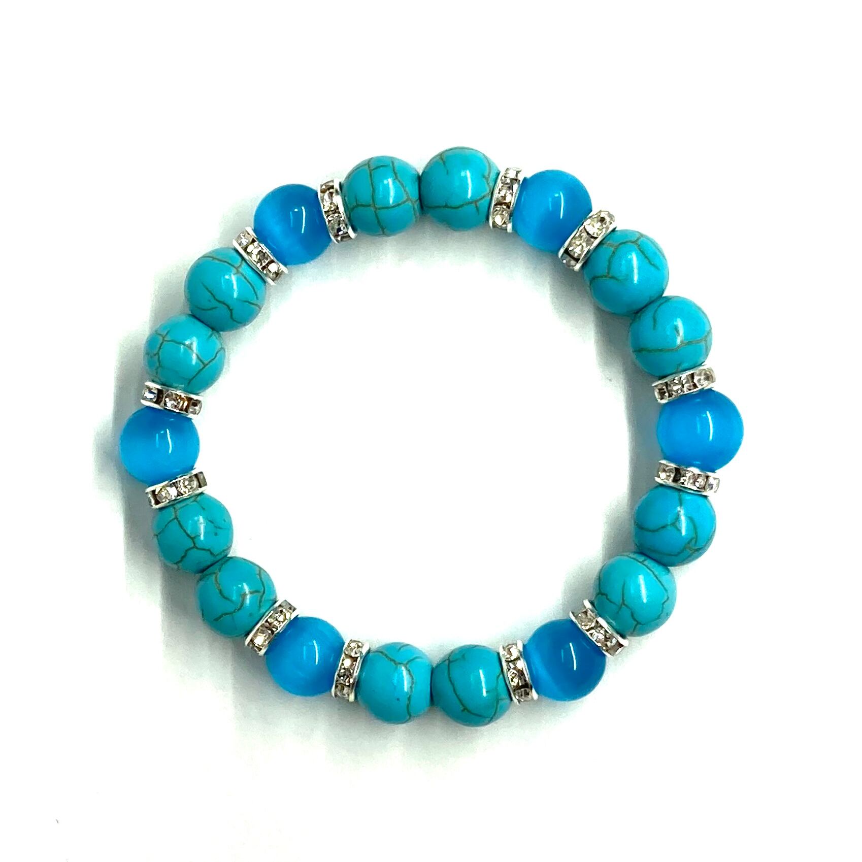 キャッツアイ(ライトブルー) ターコイズ パワーストーン ブレスレット (シルバー) メンズ・レディース 男性・女性 数珠ブレス 開運