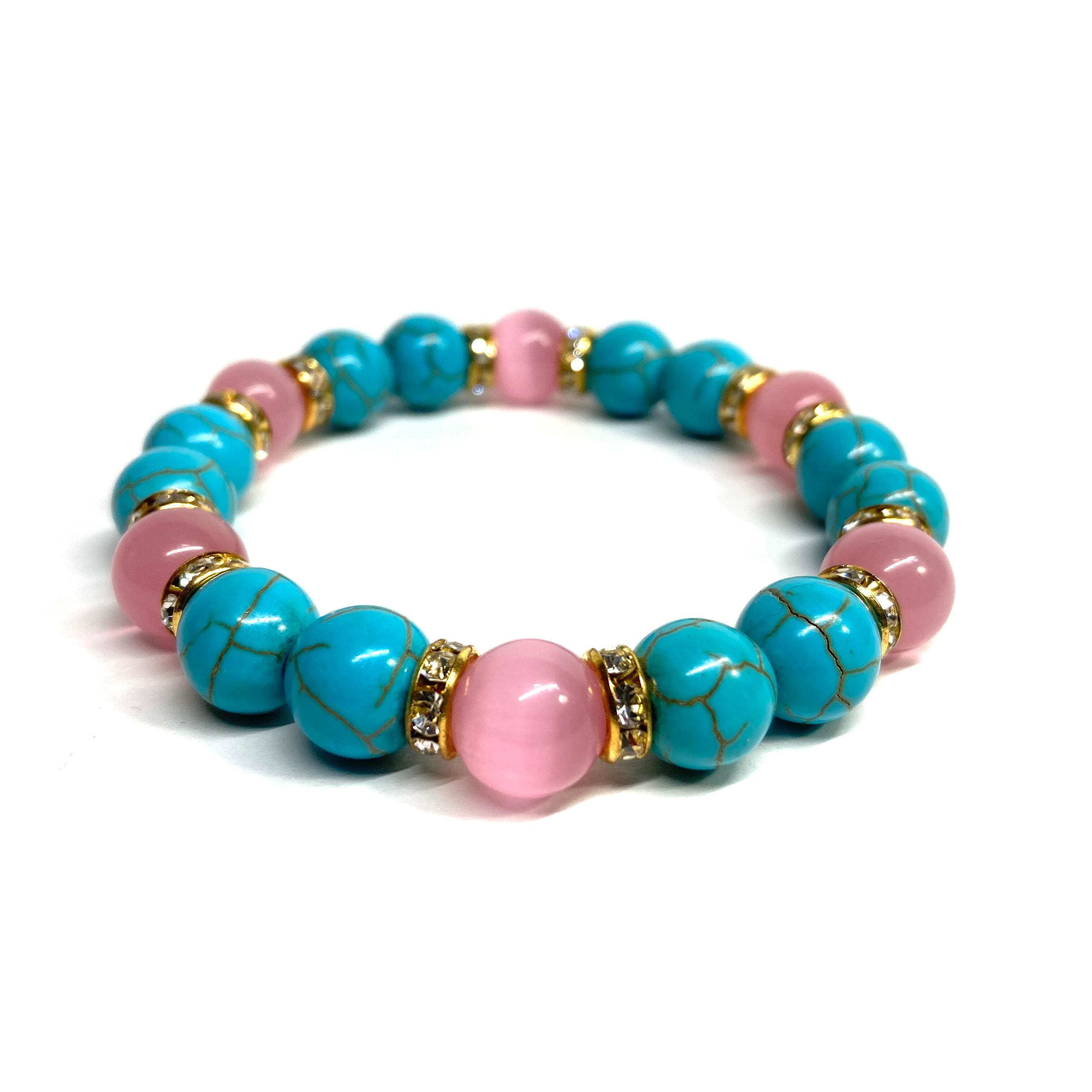 キャッツアイ(ピンク) ターコイズ パワーストーン ブレスレット (ゴールド) メンズ・レディース 男性・女性 数珠ブレス 開運