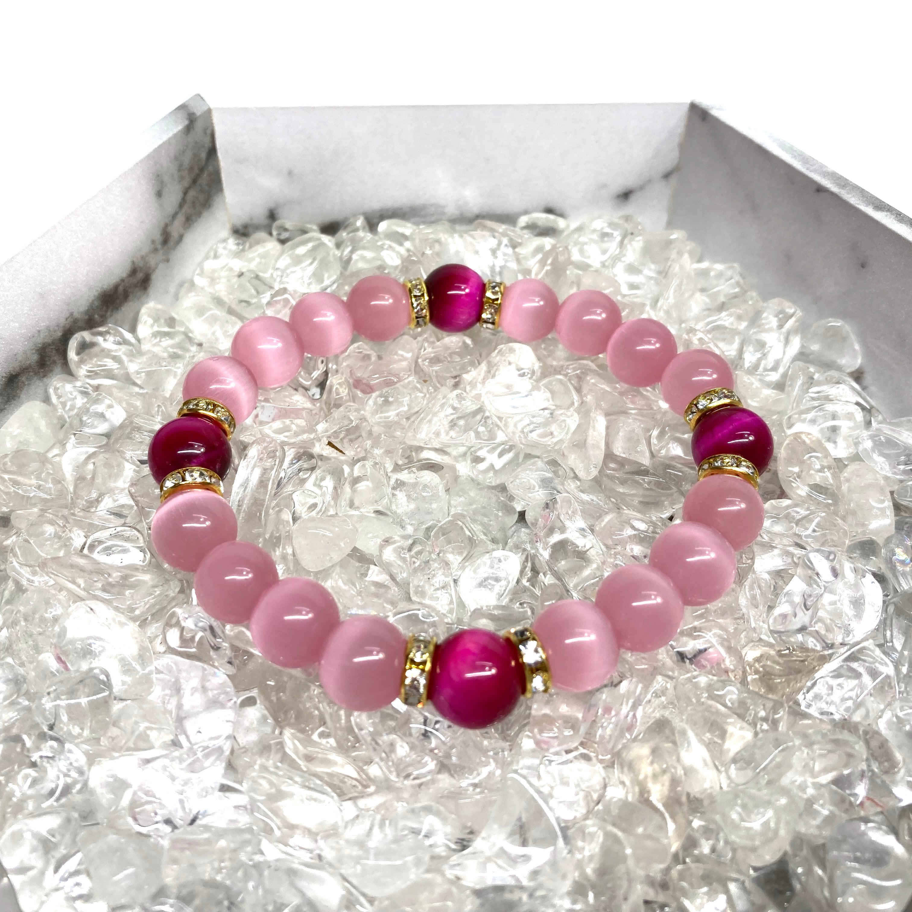 キャッツアイ(ピンク)×ピンクタイガーアイ パワーストーン ブレスレット (ゴールド) メンズ・レディース 男性・女性 数珠ブレス 開運