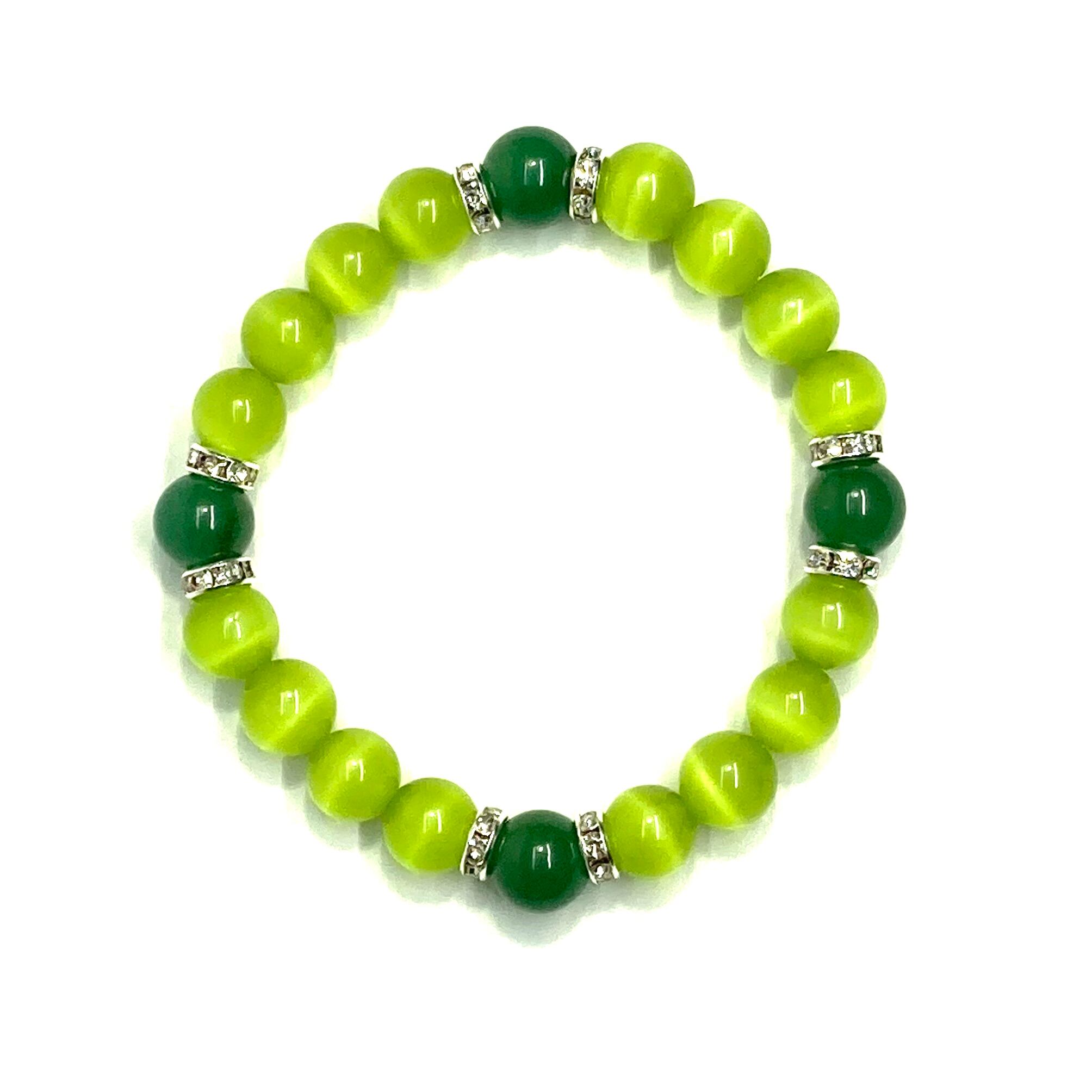 キャッツアイ(ライムグリーン)×緑瑪瑙 パワーストーン ブレスレット (シルバー) メンズ・レディース 男性・女性 数珠ブレス 開運