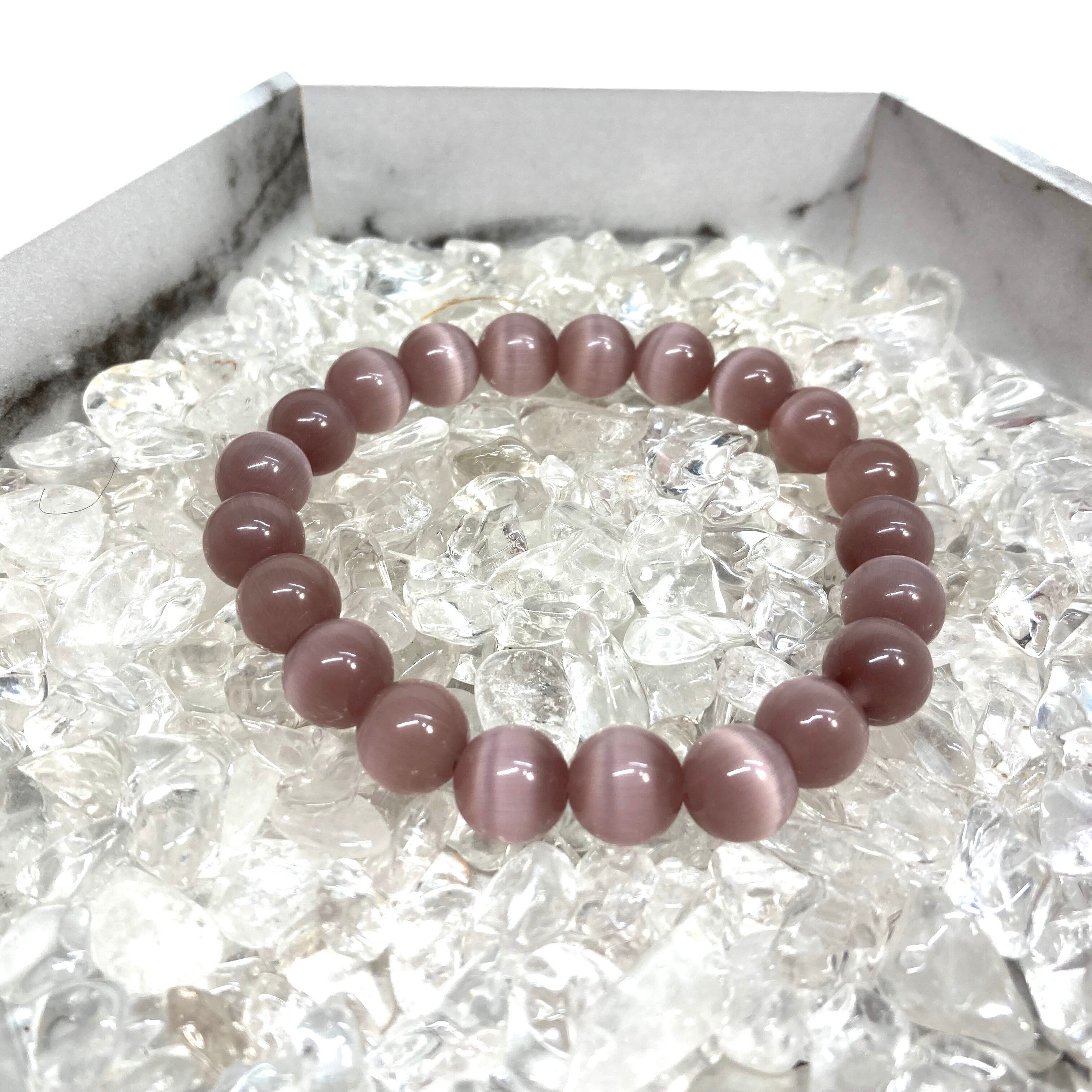 キャッツアイ(ライトパープル) パワーストーン ブレスレット (シンプル) メンズ・レディース 男性・女性 数珠ブレス 開運