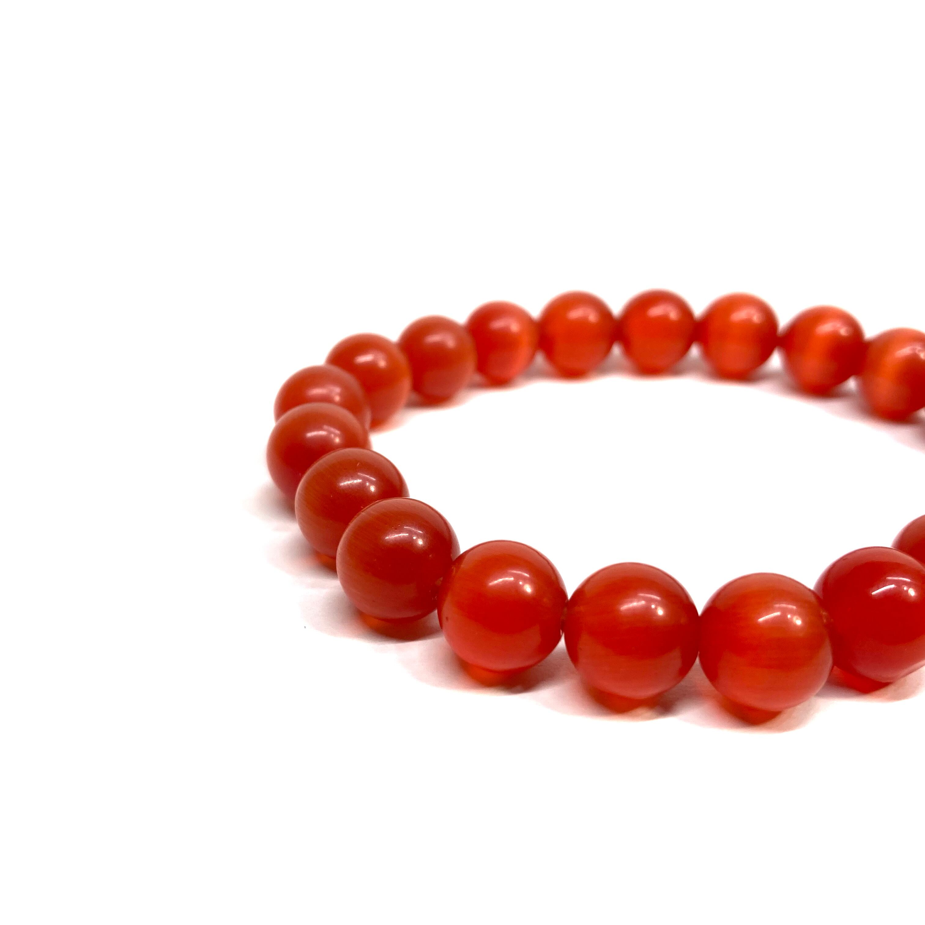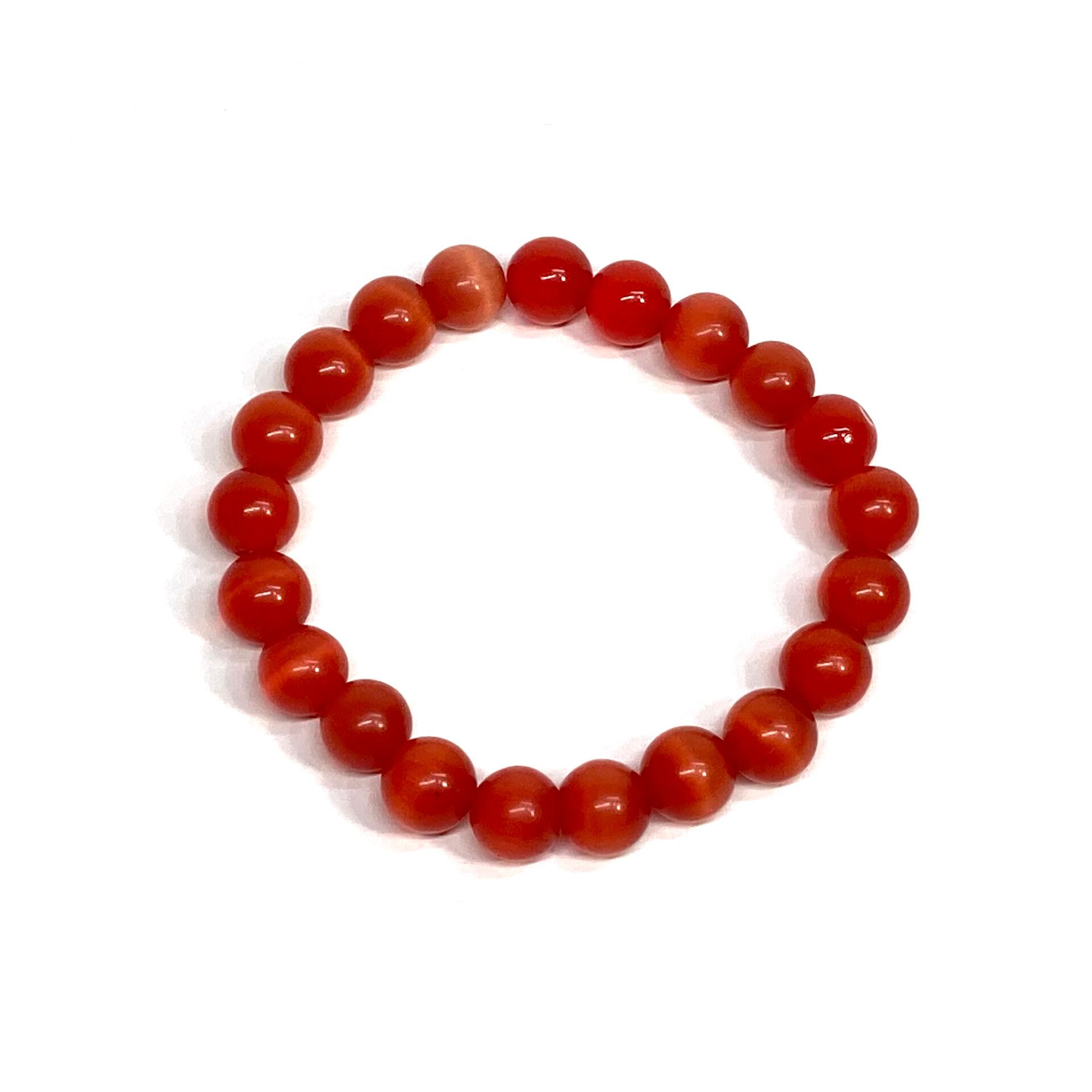 キャッツアイ(レッド) パワーストーン ブレスレット (シンプル) メンズ・レディース 男性・女性 数珠ブレス 開運