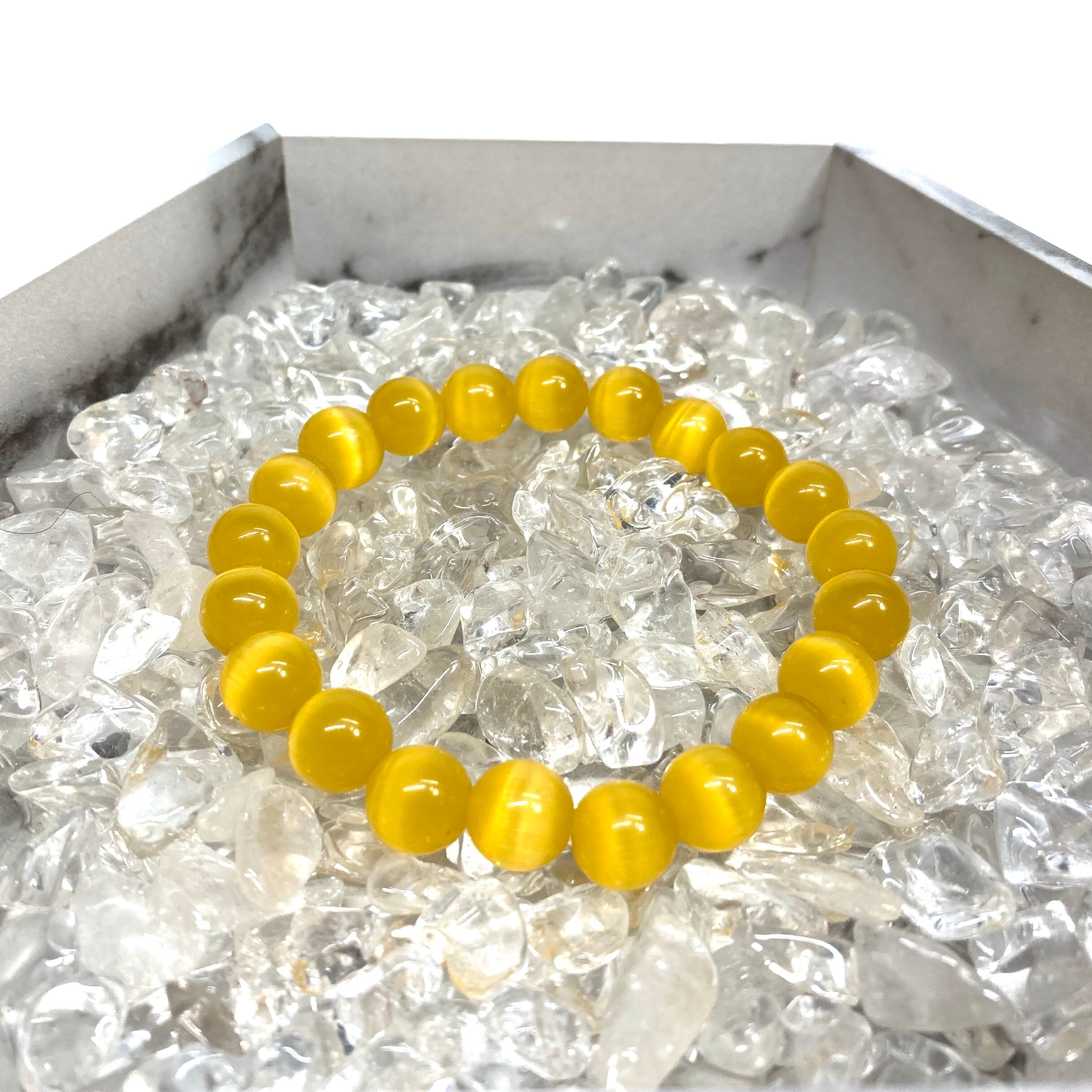 キャッツアイ(イエロー) パワーストーン ブレスレット (シンプル) メンズ・レディース 男性・女性 数珠ブレス 開運