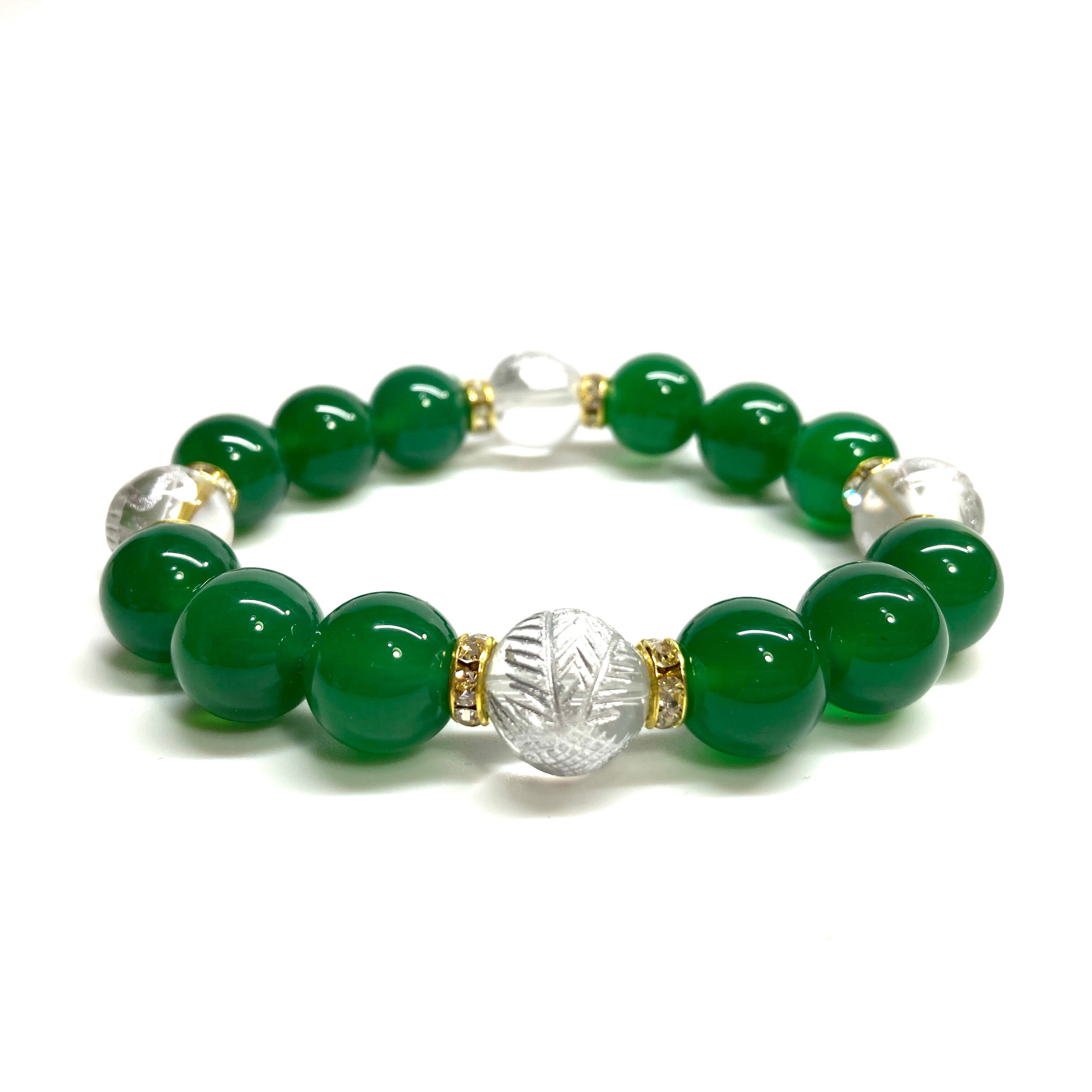 ご覧頂いているブレスレットは、四神獣銀彫水晶と緑瑪瑙を組み合わせたブレスレット。守り神である四神とパワーストーンの組み合わせで運気の流れを引き寄せる強運ブレスレットです。シンプルなデザインで男女問わず、年齢問わずご使用頂けるデザインなっております。シンプルなデザインは日常のアクセントとして、仕事やビジネスカジュアル、パーティーや特別なイベントなど様々なシーン活用できます。また、ちょっと贈り物にも最適なブレスレットになっております。四神獣を身につけて厄災から身を守り、多くの運気を呼び込まれてください。