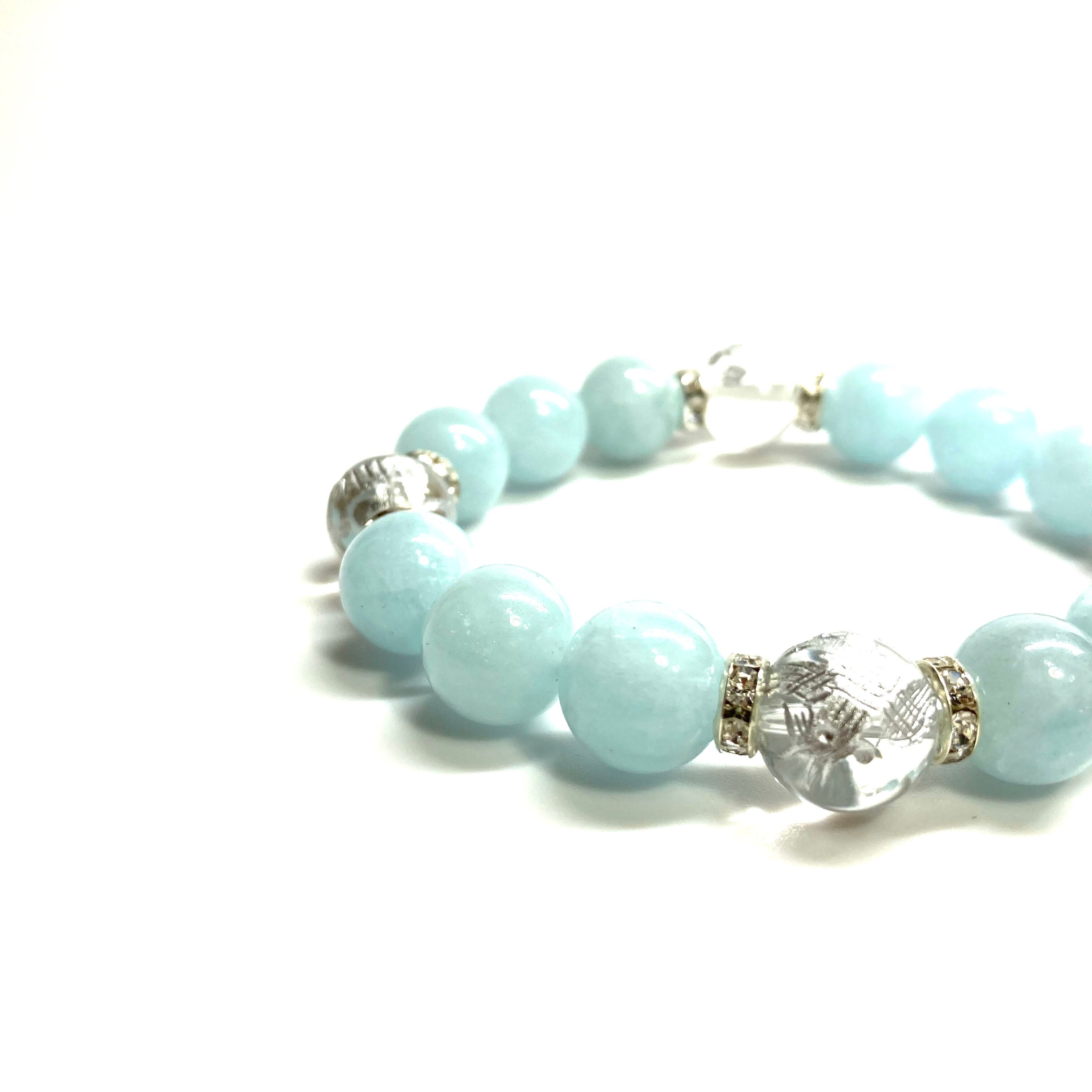 ご覧頂いているブレスレットは、四神獣銀彫水晶とアクアマリンを組み合わせたブレスレット。守り神である四神とパワーストーンの組み合わせで運気の流れを引き寄せる強運ブレスレットです。シンプルなデザインで男女問わず、年齢問わずご使用頂けるデザインなっております。シンプルなデザインは日常のアクセントとして、仕事やビジネスカジュアル、パーティーや特別なイベントなど様々なシーン活用できます。また、ちょっと贈り物にも最適なブレスレットになっております。四神獣を身につけて厄災から身を守り、多くの運気を呼び込まれてください。