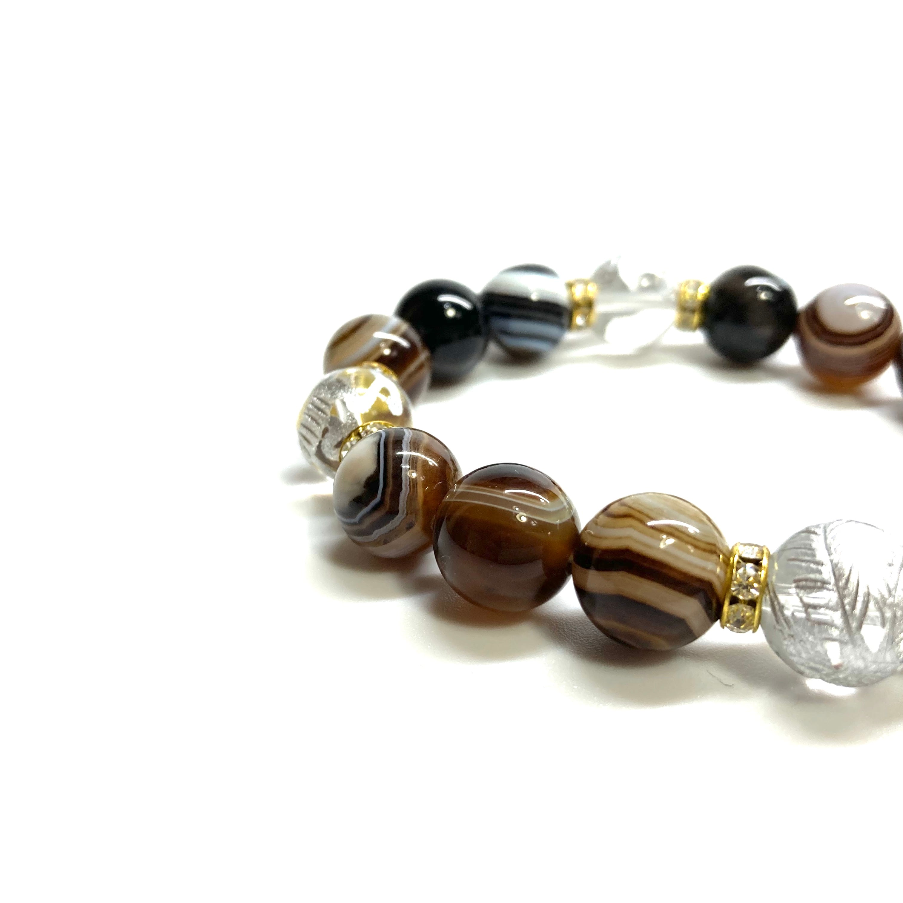 12mm 四神獣銀彫水晶×チベットアゲート(天眼石) パワーストーン ブレスレット天然石 運気上昇 金運 ギャンブル運 お守り (ゴールド)メンズ・レディース 男性・女性 数珠ブレス 開運 ☆