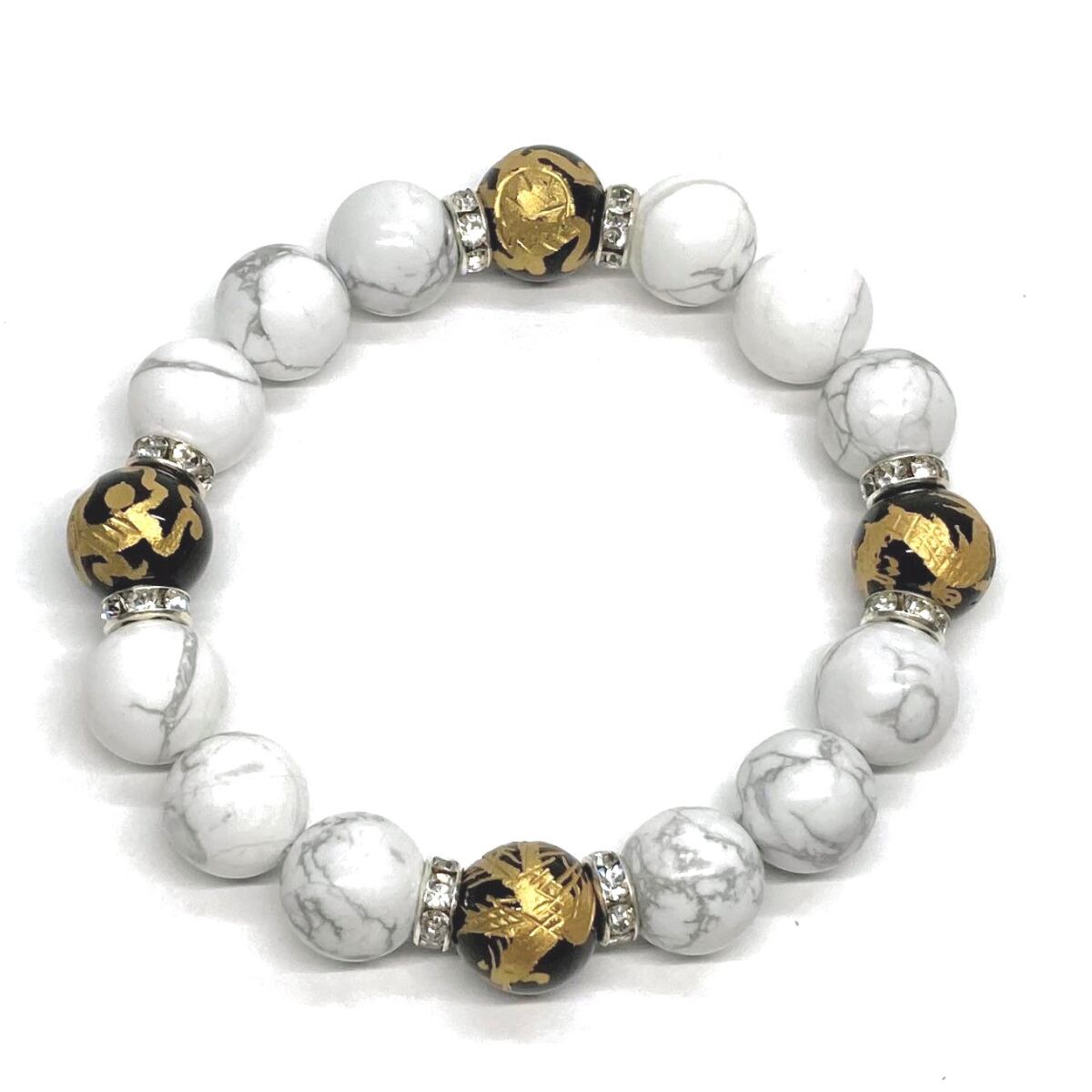 ご覧頂いているブレスレットは、四神獣金彫オニキスとハウライトを組み合わせたブレスレット。守り神である四神とパワーストーンの組み合わせで運気の流れを引き寄せる強運ブレスレットです。シンプルなデザインで男女問わず、年齢問わずご使用頂けるデザインなっております。シンプルなデザインは日常のアクセントとして、仕事やビジネスカジュアル、パーティーや特別なイベントなど様々なシーン活用できます。また、ちょっと贈り物にも最適なブレスレットになっております。四神獣を身につけて厄災から身を守り、多くの運気を呼び込まれてください。
