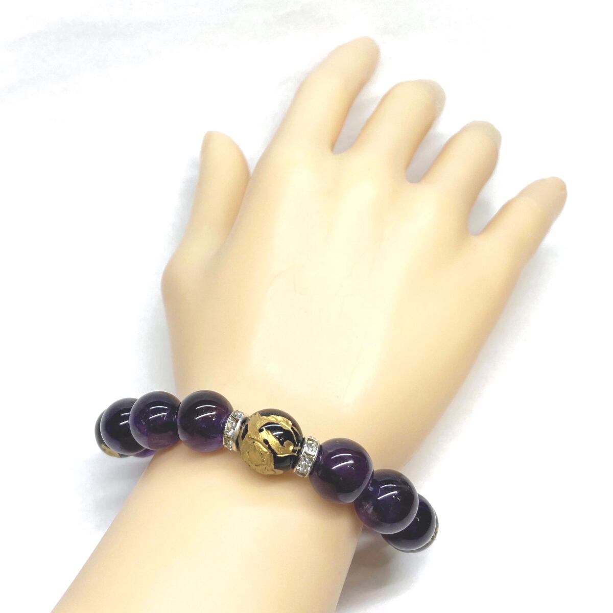 ご覧頂いているブレスレットは、四神獣金彫オニキスとアメジストを組み合わせたブレスレット。守り神である四神とパワーストーンの組み合わせで運気の流れを引き寄せる強運ブレスレットです。シンプルなデザインで男女問わず、年齢問わずご使用頂けるデザインなっております。シンプルなデザインは日常のアクセントとして、仕事やビジネスカジュアル、パーティーや特別なイベントなど様々なシーン活用できます。また、ちょっと贈り物にも最適なブレスレットになっております。四神獣を身につけて厄災から身を守り、多くの運気を呼び込まれてください。