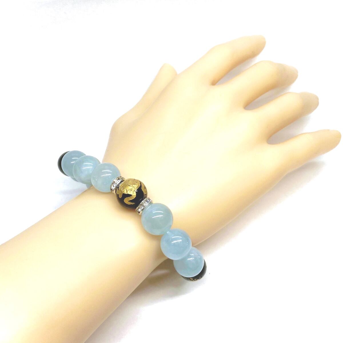 ご覧頂いているブレスレットは、四神獣金彫オニキスとアクアマリンを組み合わせたブレスレット。守り神である四神とパワーストーンの組み合わせで運気の流れを引き寄せる強運ブレスレットです。シンプルなデザインで男女問わず、年齢問わずご使用頂けるデザインなっております。シンプルなデザインは日常のアクセントとして、仕事やビジネスカジュアル、パーティーや特別なイベントなど様々なシーン活用できます。また、ちょっと贈り物にも最適なブレスレットになっております。四神獣を身につけて厄災から身を守り、多くの運気を呼び込まれてください。