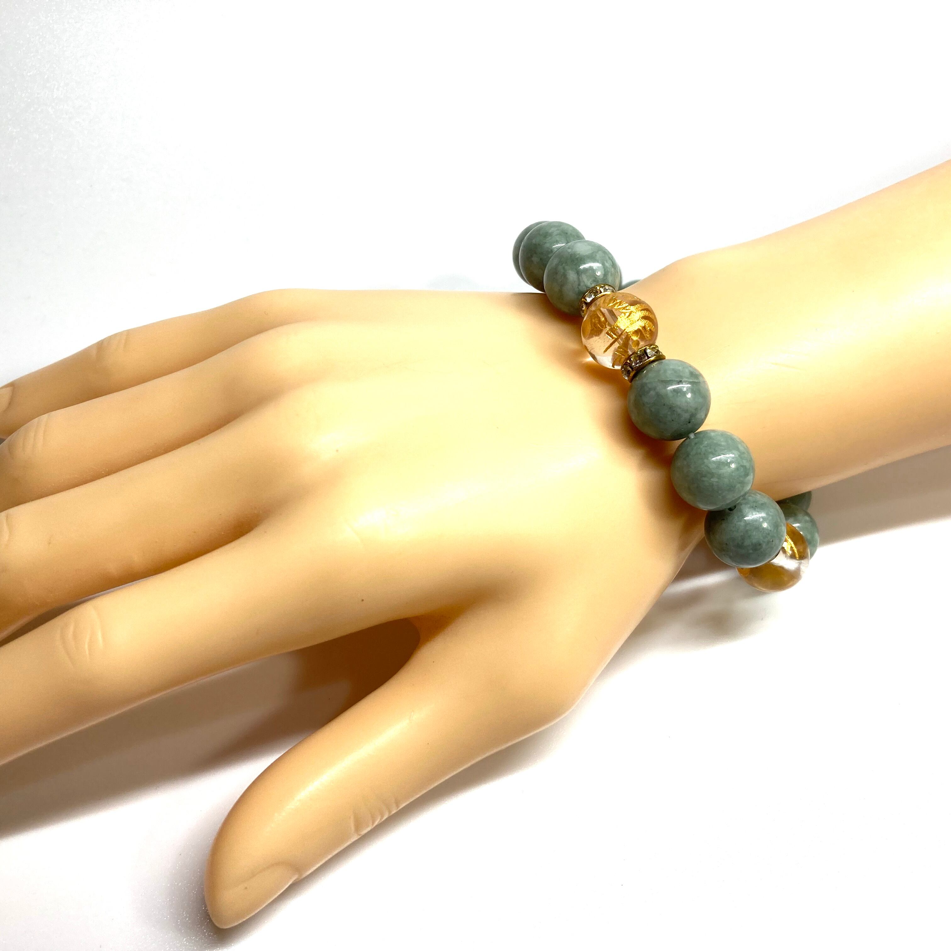 12mm 四神獣金彫水晶×ビルマ翡翠 パワーストーン ブレスレット天然石 運気上昇 金運 ギャンブル運 お守り (ゴールド)メンズ・レディース 男性・女性 数珠ブレス 開運 ☆
