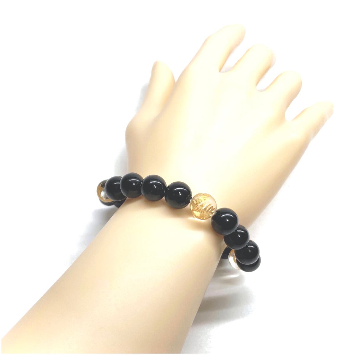 10mm 四神獣金彫水晶×オニキス パワーストーン ブレスレット天然石 運気上昇 開運 金運 恋愛運 お守り 青龍 白虎 玄武 朱雀 シンプル ☆