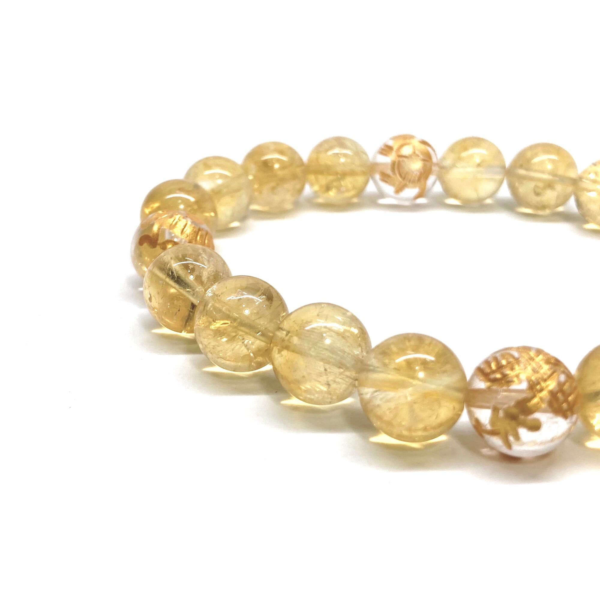 10mm 四神獣金彫水晶×シトリン パワーストーン ブレスレット天然石 運気上昇 開運 幸運 恋愛運 お守り 青龍 白虎 玄武 朱雀 ☆