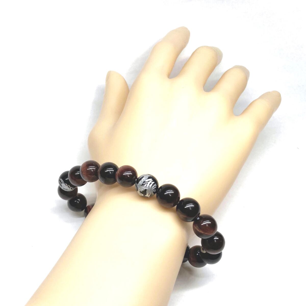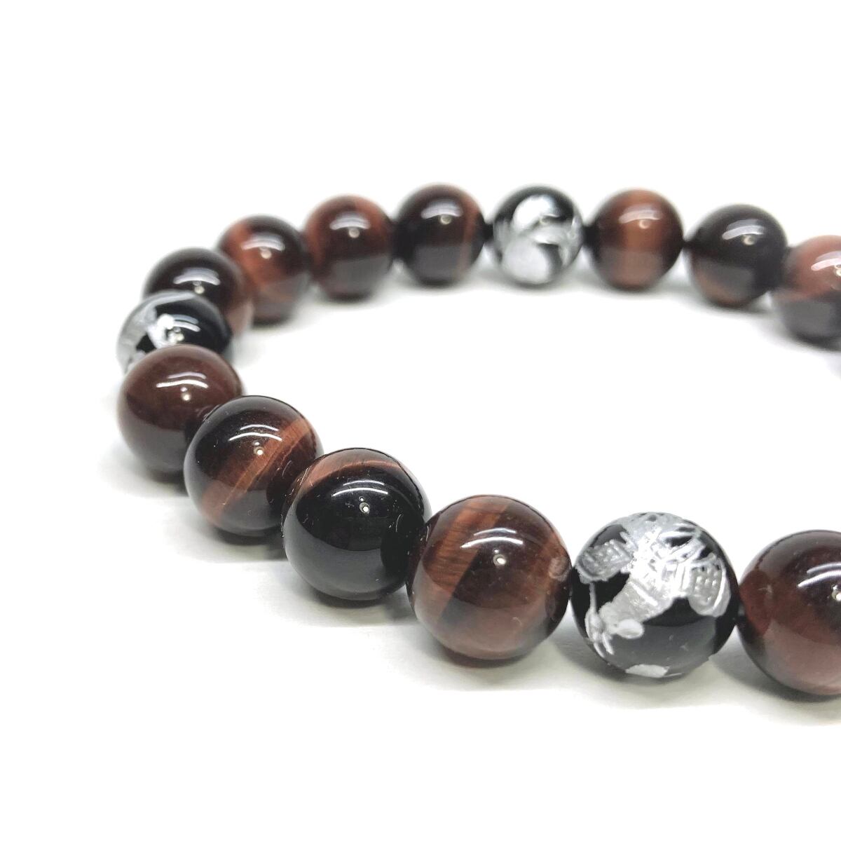 10mm 四神獣銀彫オニキス×レッドタイガーアイ パワーストーン ブレスレット天然石 運気上昇 開運 金運 恋愛運 お守り 青龍 白虎 玄武 朱雀 ☆