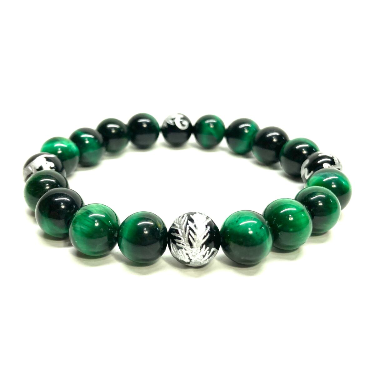 10mm 四神獣銀彫オニキス×グリーンタイガーアイ パワーストーン ブレスレット天然石 運気上昇 開運 金運 お守り 青龍 白虎 玄武 朱雀 ☆