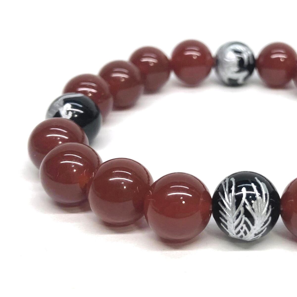 10mm 四神獣銀彫オニキス×赤瑪瑙 パワーストーン ブレスレット天然石 運気上昇 開運 金運 恋愛運 お守り 青龍 白虎 玄武 朱雀 シンプル ☆