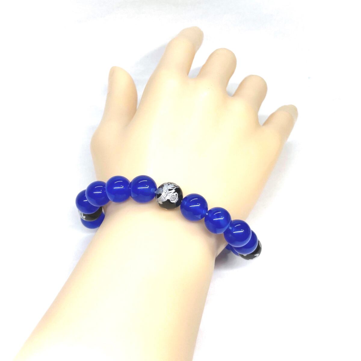 10mm 四神獣銀彫オニキス×青瑪瑙 パワーストーン ブレスレット天然石 運気上昇 開運 金運 恋愛運 お守り 青龍 白虎 玄武 朱雀 シンプル ☆