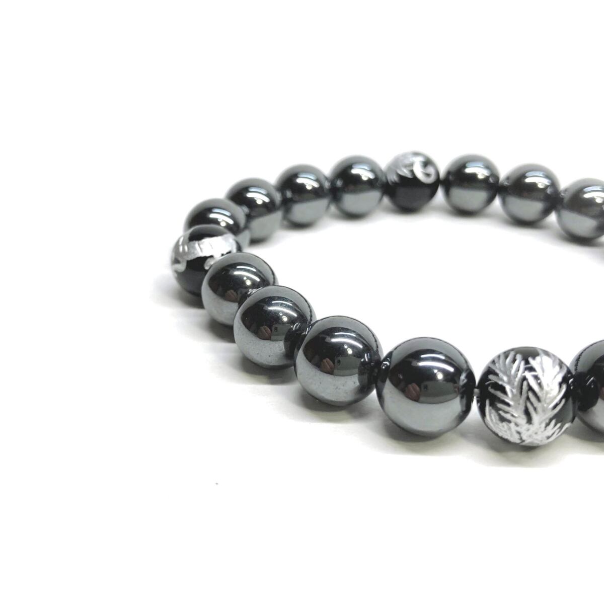 10mm 四神獣銀彫オニキス×ヘマタイト パワーストーン ブレスレット天然石 運気上昇 開運 金運 恋愛運 お守り 青龍 白虎 玄武 朱雀 ☆