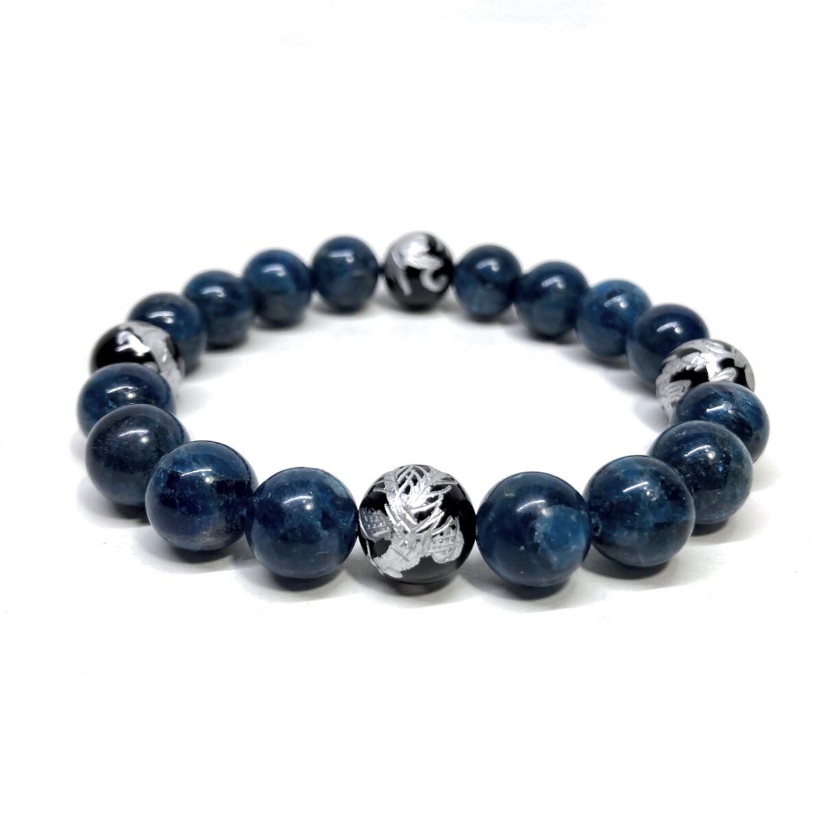 10mm 四神獣銀彫オニキス×アパタイト パワーストーン ブレスレット天然石 運気上昇 開運 幸運 金運 恋愛運 お守り 青龍 白虎 玄武 朱雀 ☆