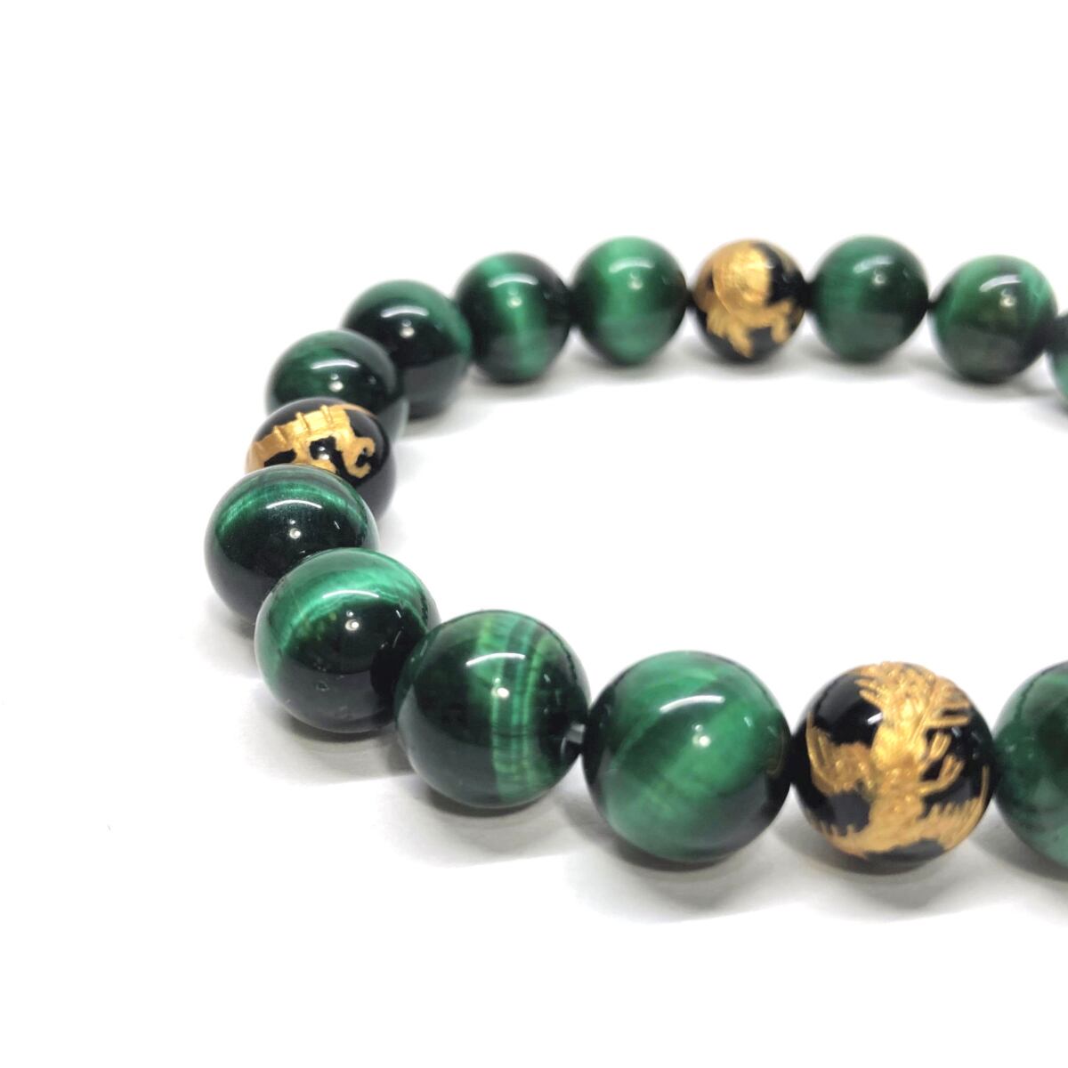 10mm 四神獣金彫オニキス×グリーンタイガーアイ パワーストーン ブレスレット天然石 運気上昇 開運 金運 お守り 青龍 白虎 玄武 朱雀 ☆