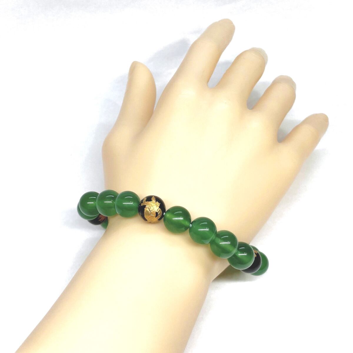 10mm 四神獣金彫オニキス×緑瑪瑙 パワーストーン ブレスレット天然石 運気上昇 開運 金運 恋愛運 お守り 青龍 白虎 玄武 朱雀 シンプル ☆