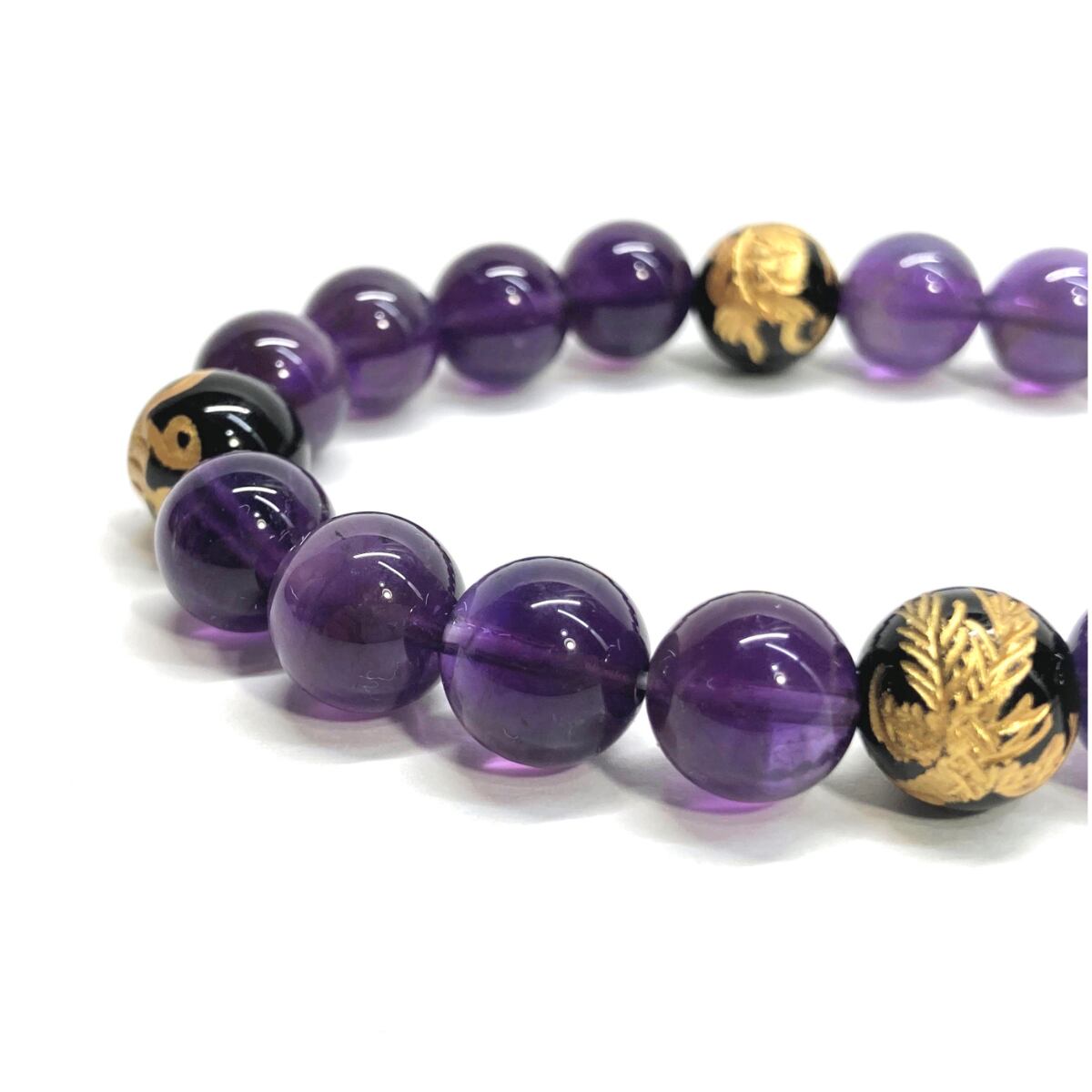 10mm 四神獣金彫オニキス×アメジスト パワーストーン ブレスレット天然石 運気上昇 開運 金運 恋愛運 お守り 青龍 白虎 玄武 朱雀 ☆