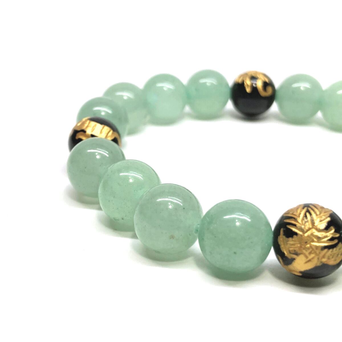 10mm 四神獣金彫オニキス×アベンチュリン パワーストーン ブレスレット天然石 運気上昇 開運 金運 恋愛運 お守り 青龍 白虎 玄武 朱雀 ☆