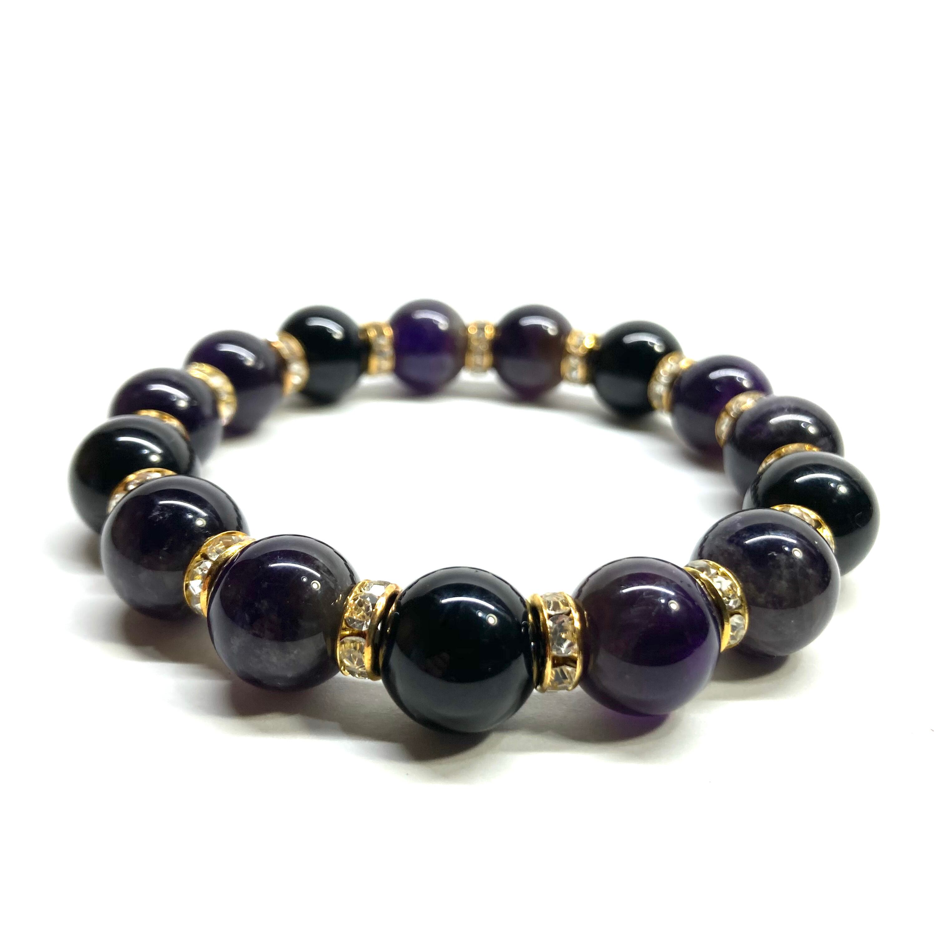 アメジスト&オニキス パワーストーン ブレスレット 12mm (ゴールド)メンズ・レディース 男性・女性 数珠ブレス 開運 ☆
