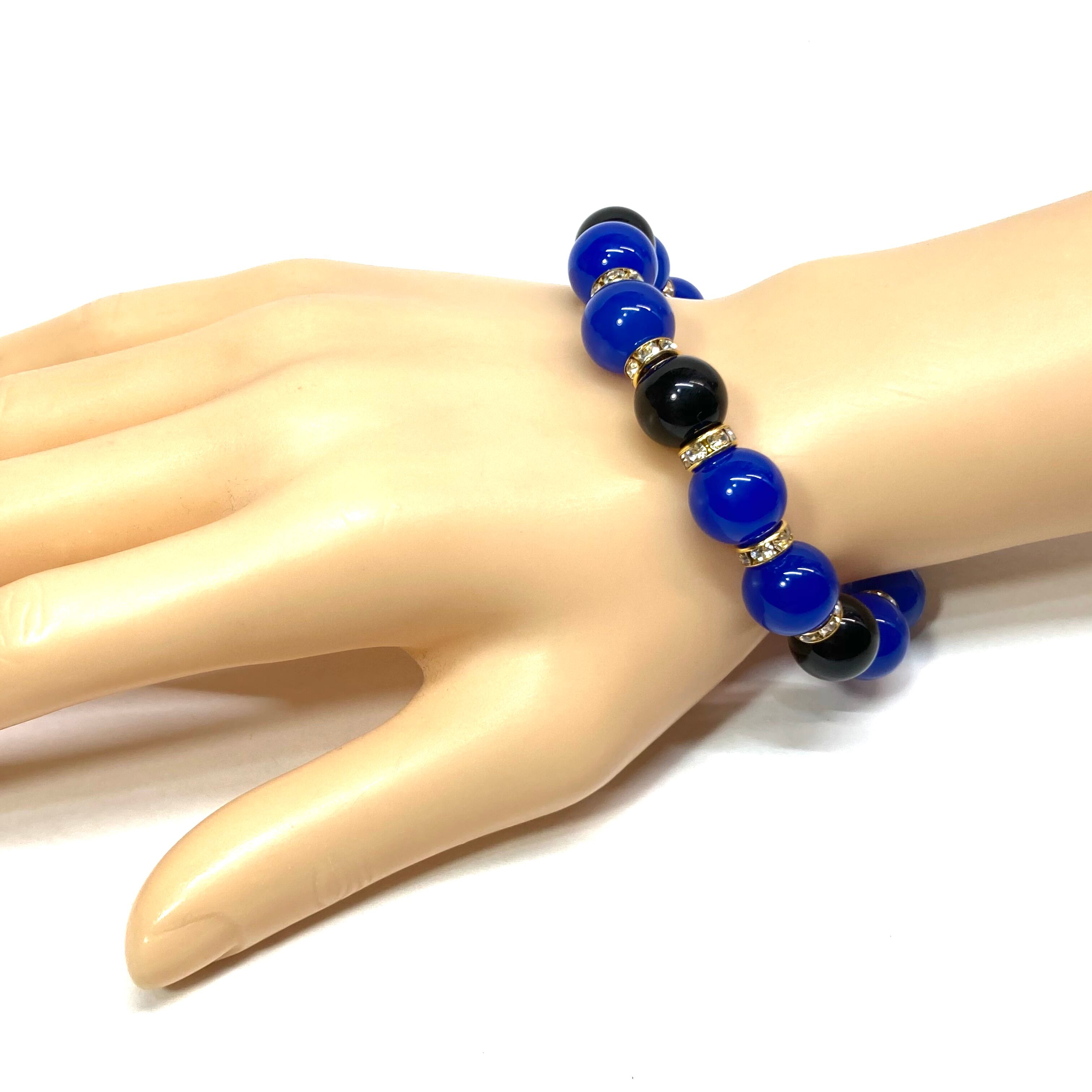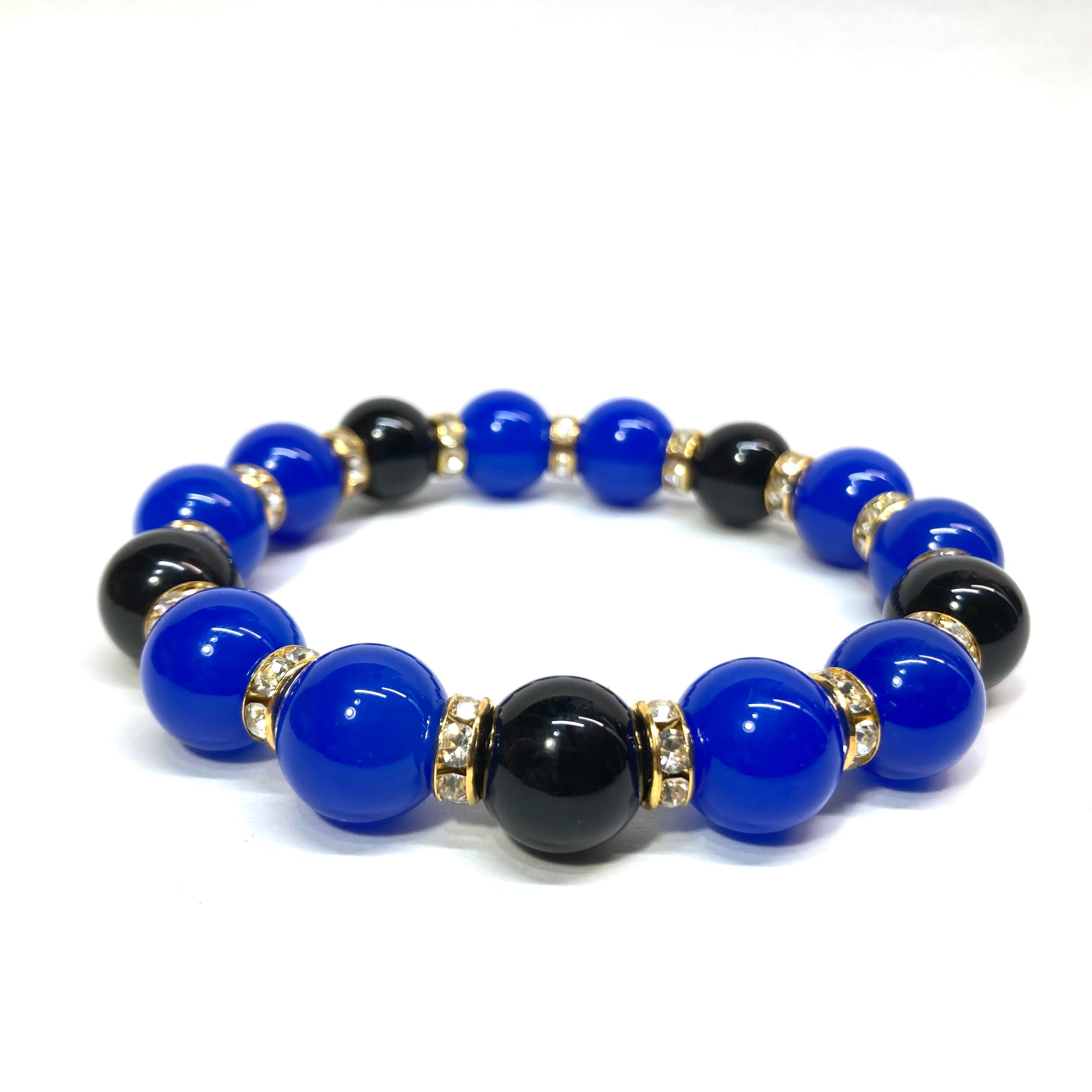 こちらは、12mm玉の青瑪瑙とオニキスを組み合わせたパワーストーンブレスレットです。間にはロンデルを挟み高級感あるデザインに仕上げております。石大きさは12mm玉を使用して内径約18cmです。(サイズ変更の場合は取引ナビにてご連絡をお願いします。) 数に限りがございますので気になる方はお早めにどうぞ。
