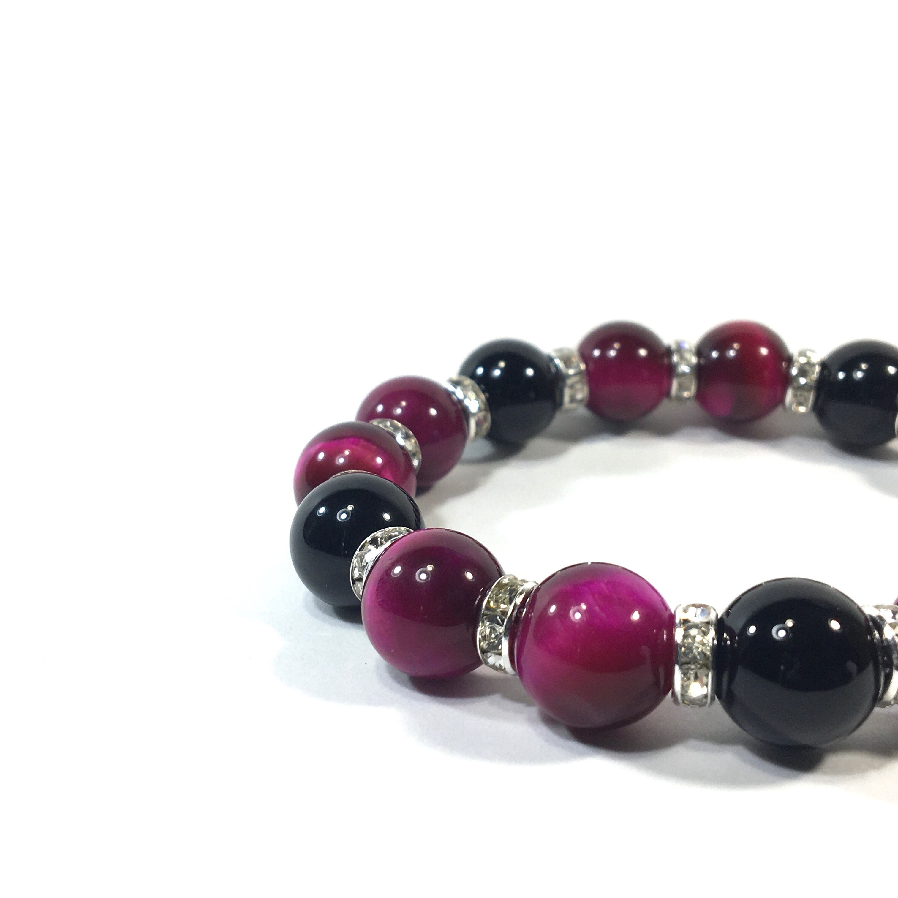 ピンクタイガーアイ&オニキス パワーストーン ブレスレット 12mm (シルバー)メンズ・レディース 男性・女性 数珠ブレス 開運 ☆