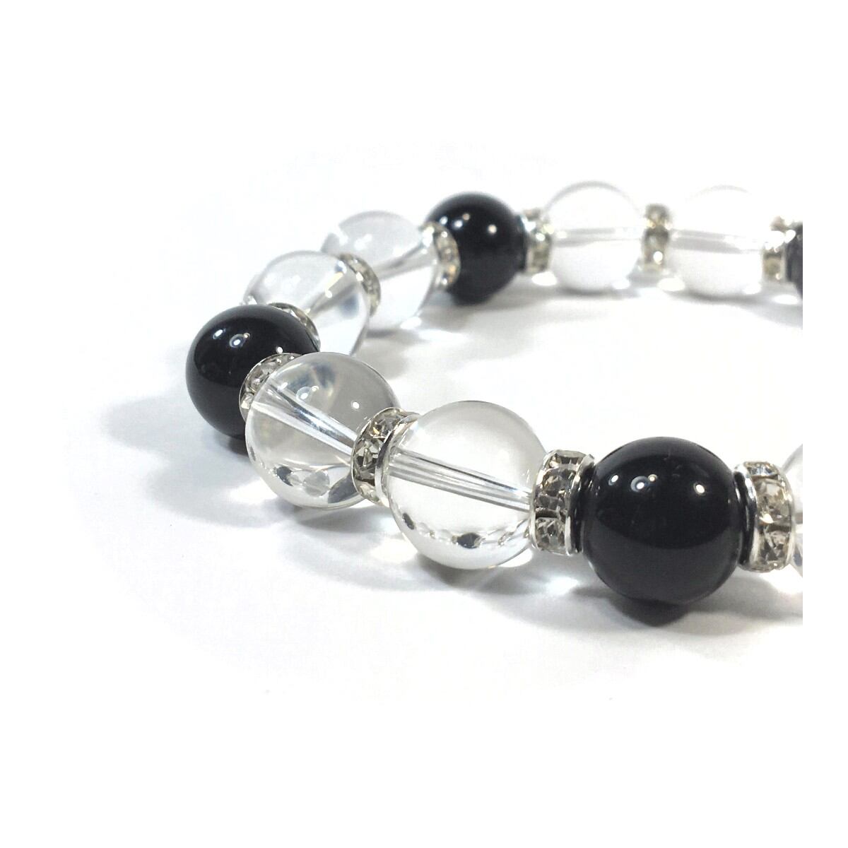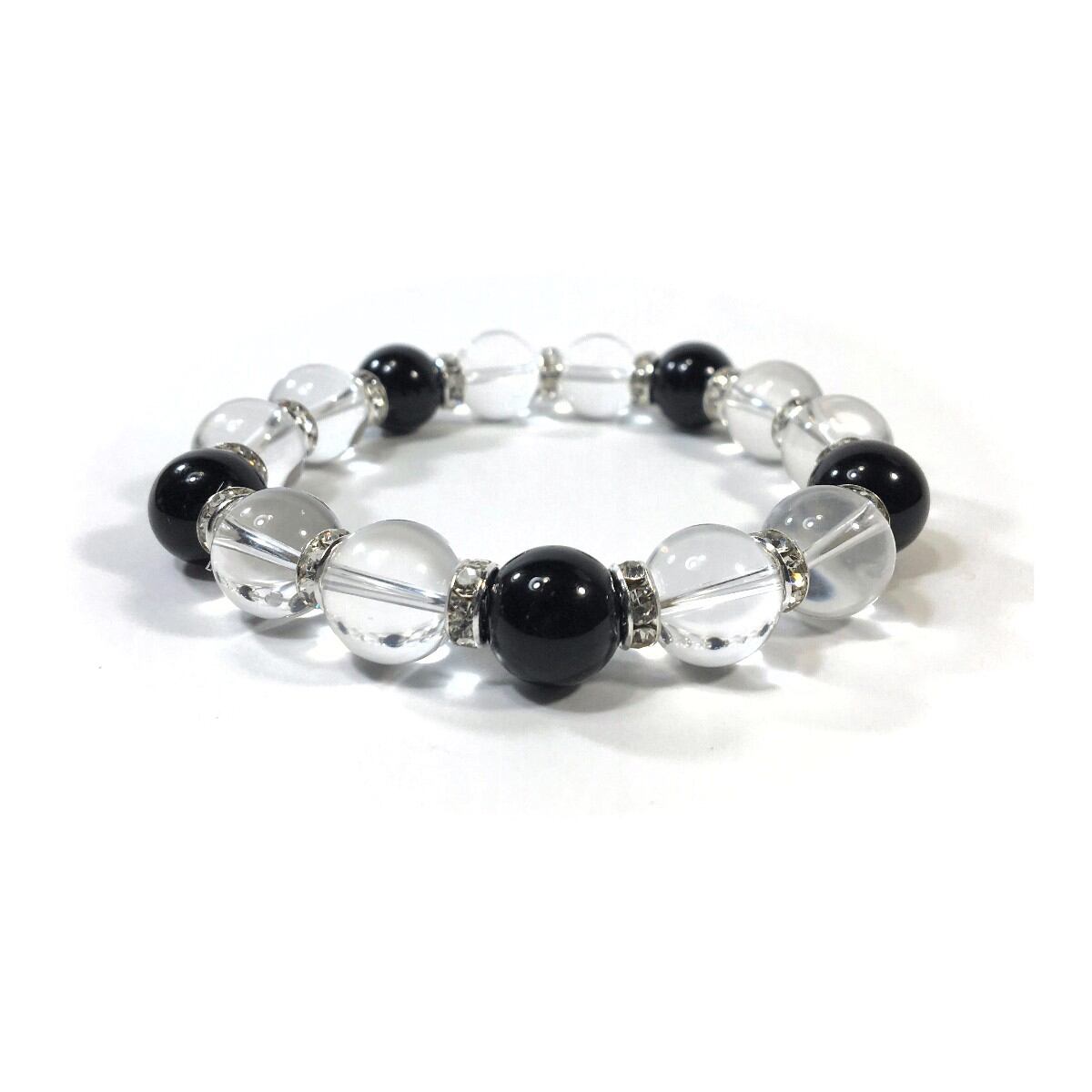 水晶&オニキス パワーストーン ブレスレット 天然石ブレス 12mm (シルバー)メンズ・レディース 男性・女性 数珠ブレス 開運 ☆