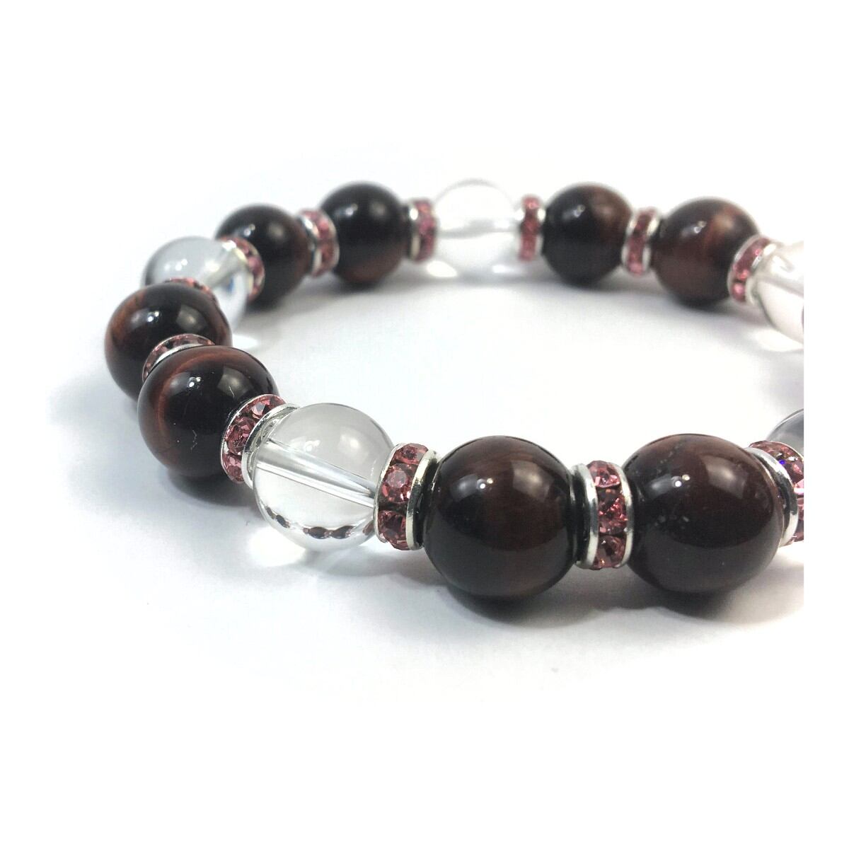 レッドタイガーアイ&水晶 パワーストーン ブレスレット 12mm (ピンク)メンズ・レディース 男性・女性 数珠ブレス 開運 ☆
