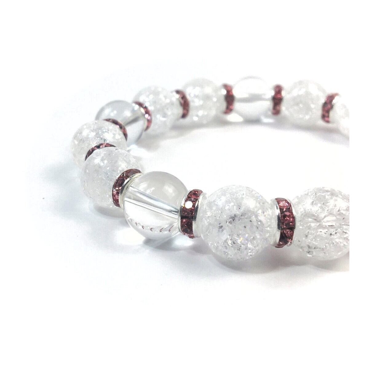 クラック水晶&水晶 パワーストーン ブレスレット 天然石 12mm (ピンク)メンズ・レディース 男性・女性 数珠ブレス 開運 ☆