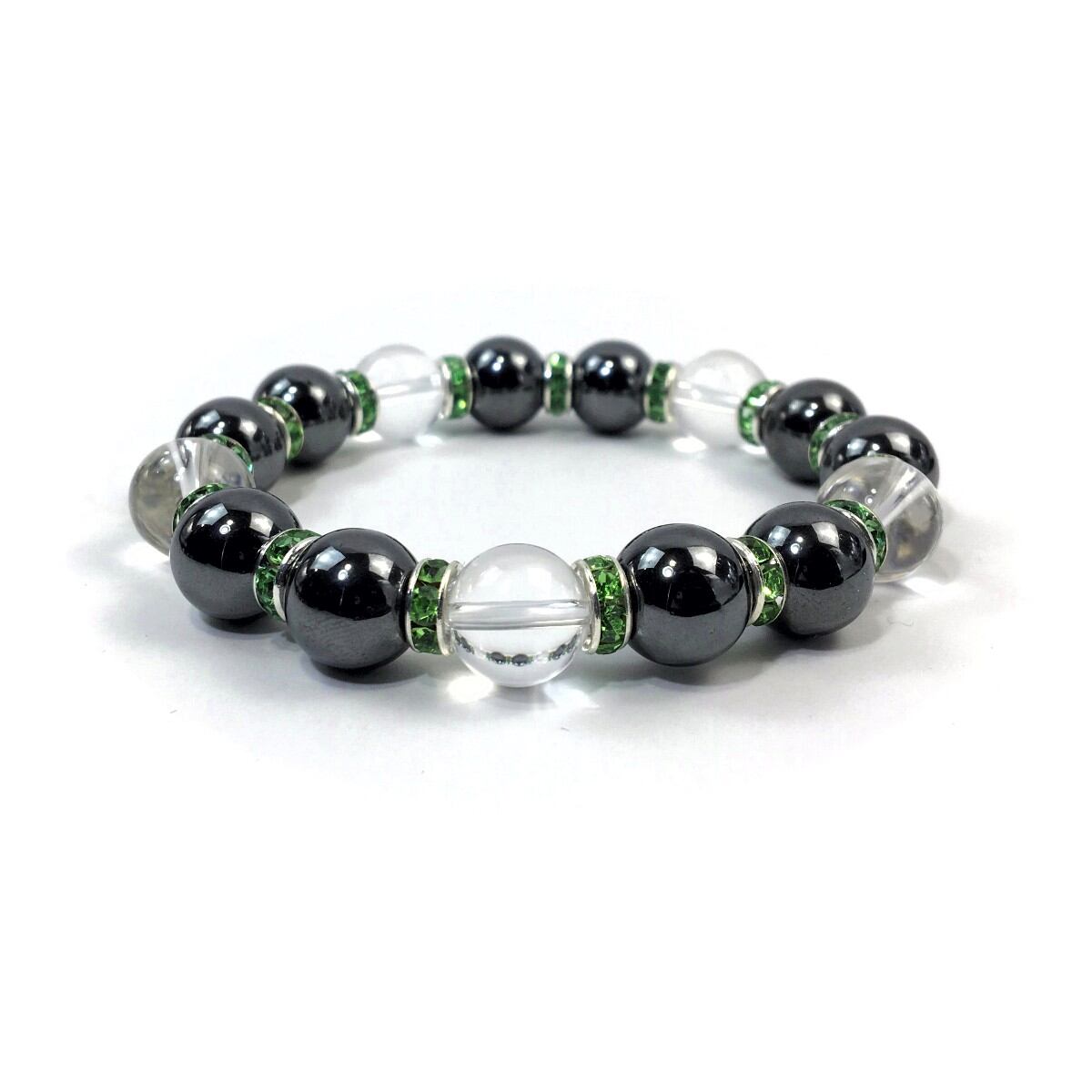 ヘマタイト&水晶 パワーストーン ブレスレット 天然石 12mm (グリーン)メンズ・レディース 男性・女性 数珠ブレス 開運 ☆