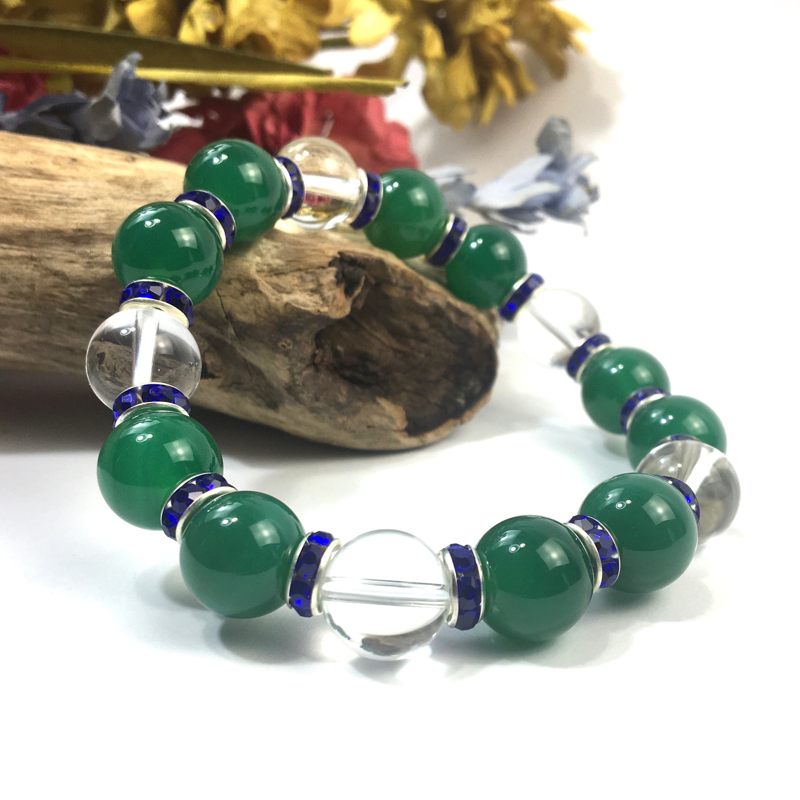 緑瑪瑙&水晶 パワーストーン ブレスレット 天然石 12mm (ダークブルー)メンズ・レディース 男性・女性 数珠ブレス 開運 ☆