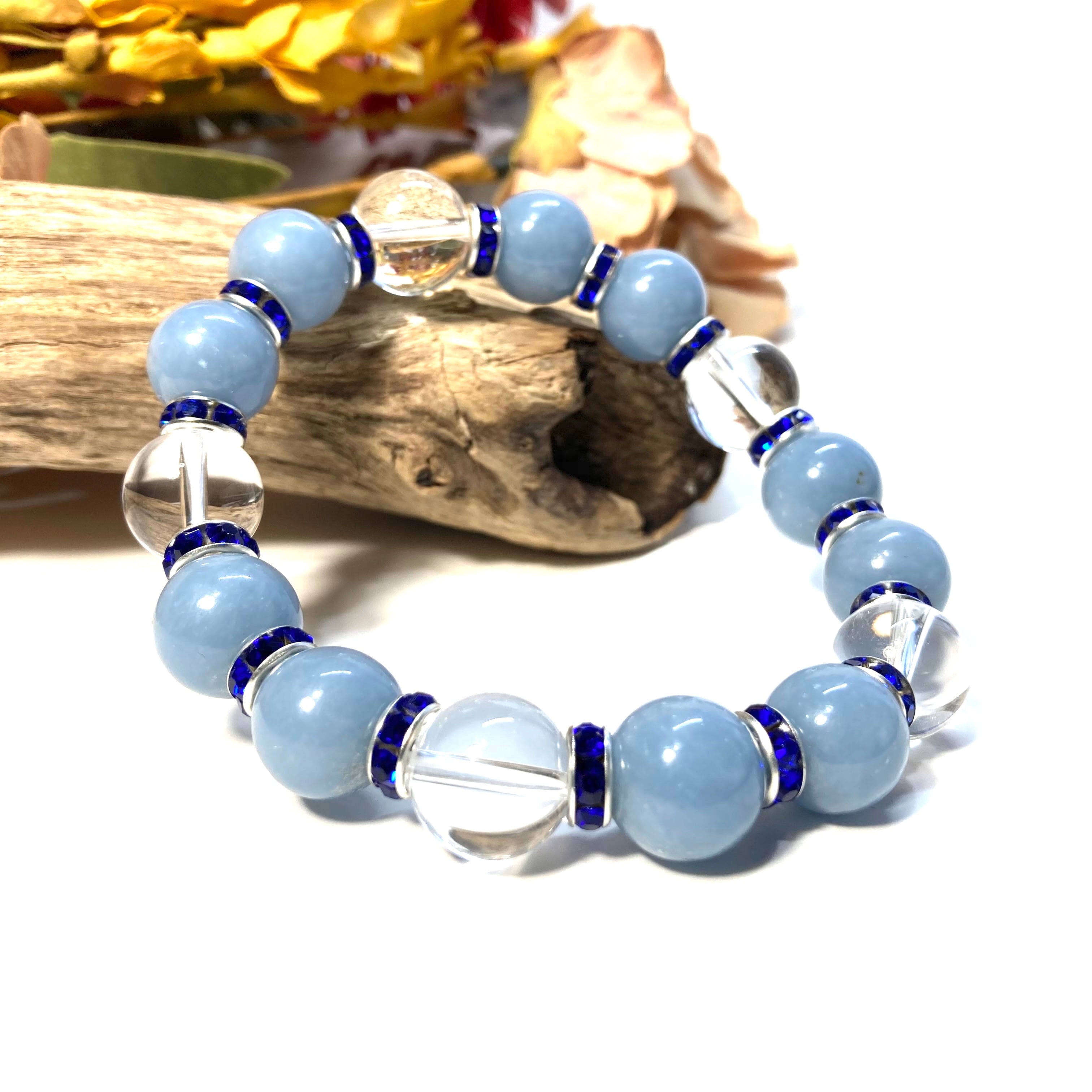 エンジェライト&水晶 パワーストーン ブレスレット 天然石 12mm (ダークブルー)メンズ・レディース 男性・女性 数珠ブレス 開運 ☆