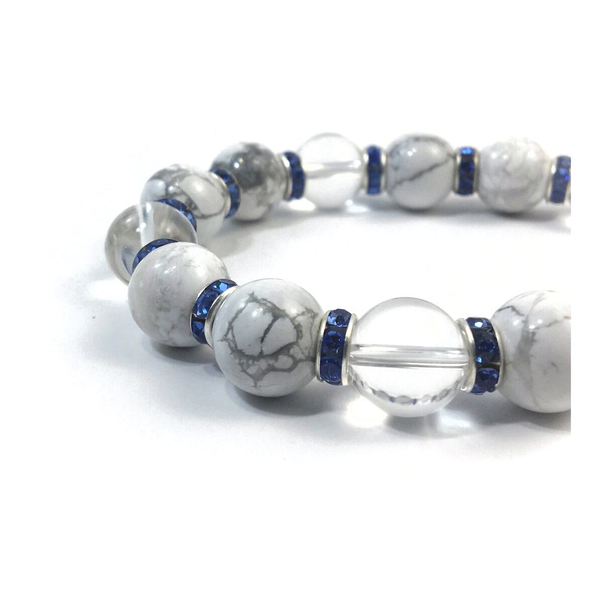 ハウライト&水晶 パワーストーン ブレスレット 天然石 12mm (ブルー)メンズ・レディース 男性・女性 数珠ブレス 開運 ☆